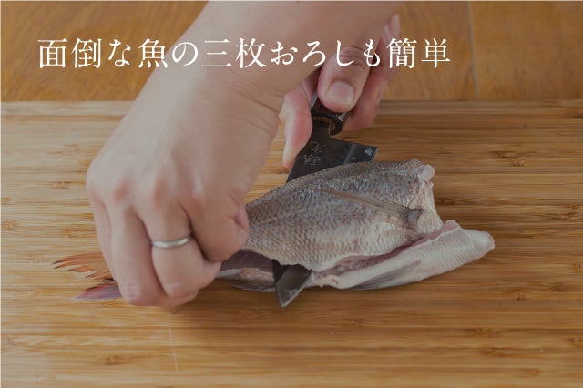 頭から尾まで一気に刃が通り、面倒な魚の三枚おろしも簡単です。