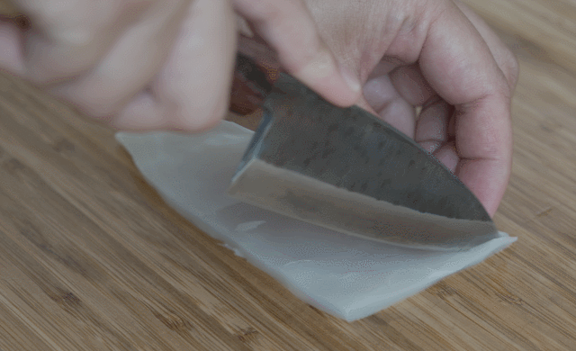 イカそうめんを作る時も、刃先の切れ味が鋭く身離れが良い【SHINBU】なら軽快にサクサク切れます。