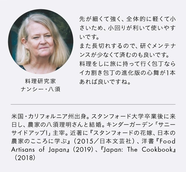 ※本品は両刃仕立てです。切れ味が鈍った場合は、市販のキッチンナイフ用のシャープナーで研ぎ直しをしていただければ、簡単に切れ味が戻りますが、定期的にプロの職人に研いでもらうことで、長く機能が持続します。