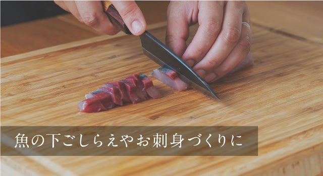 【SHINBU】はサバやアジなど小型の魚も捌きやすく、鱗を削ぎ落すばら引きや、薄皮を残すすき引きも楽々。