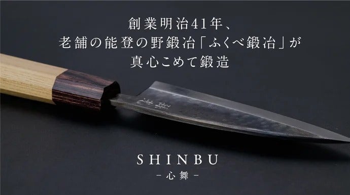 【SHINBU (心舞)】はイカ日本三大漁港・能登の野鍛冶が鍛え上げたタフで抜群の切れ味を誇る万能出刃包丁です。