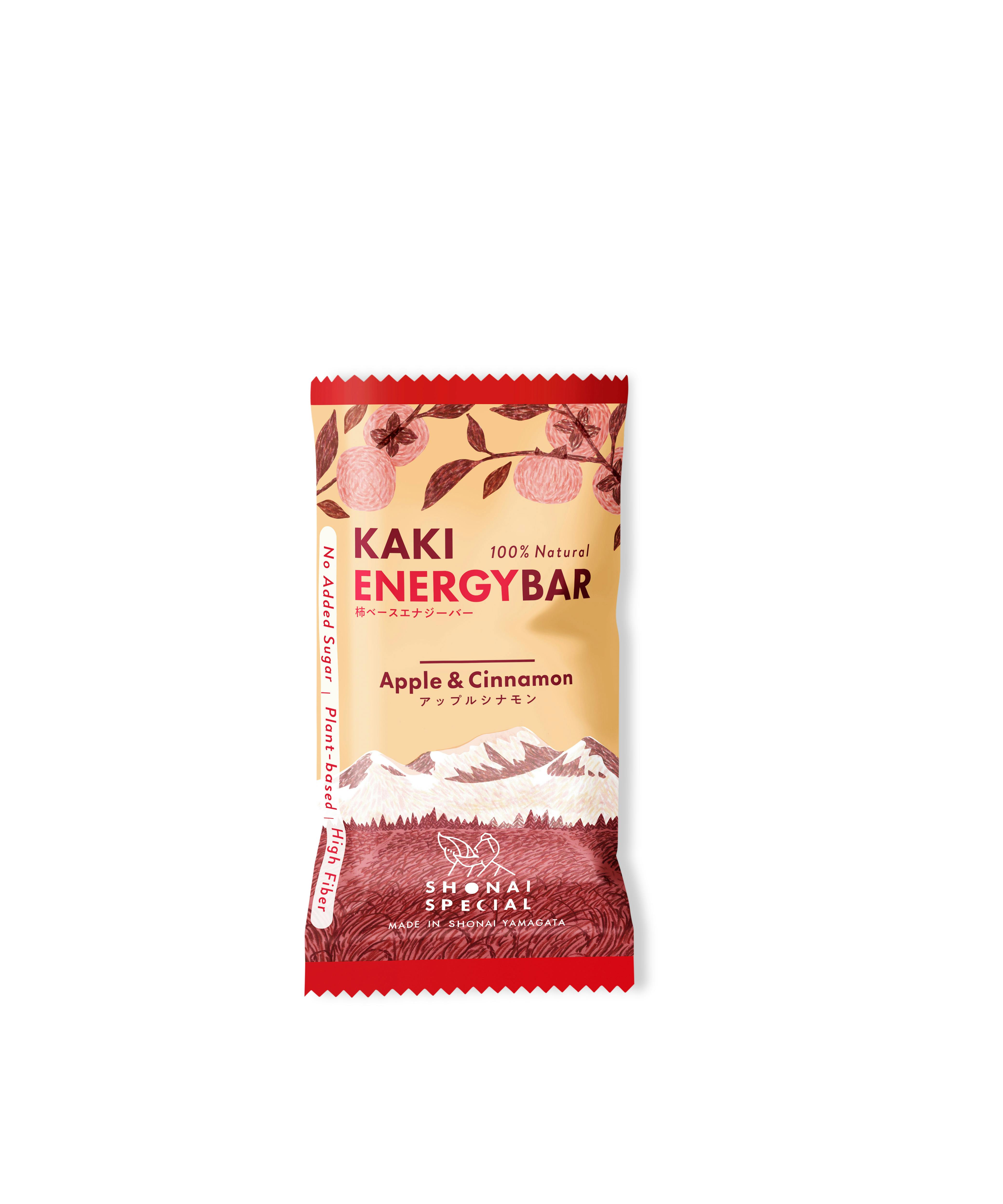 特に「庄内柿」は食物繊維・ポリフェノール・ビタミンが豊富で、昔からこの地域で生産されてきた伝統的な食べ物の一つです。干し柿にすることで甘さと栄養がぎゅっと凝縮され、まさに伝統的なスーパーフードです。一つ一つ丁寧に乾燥させた柿は、すべての材料をまとめる粘り気を与え、エナジーバーの完璧なベースを作り出します。