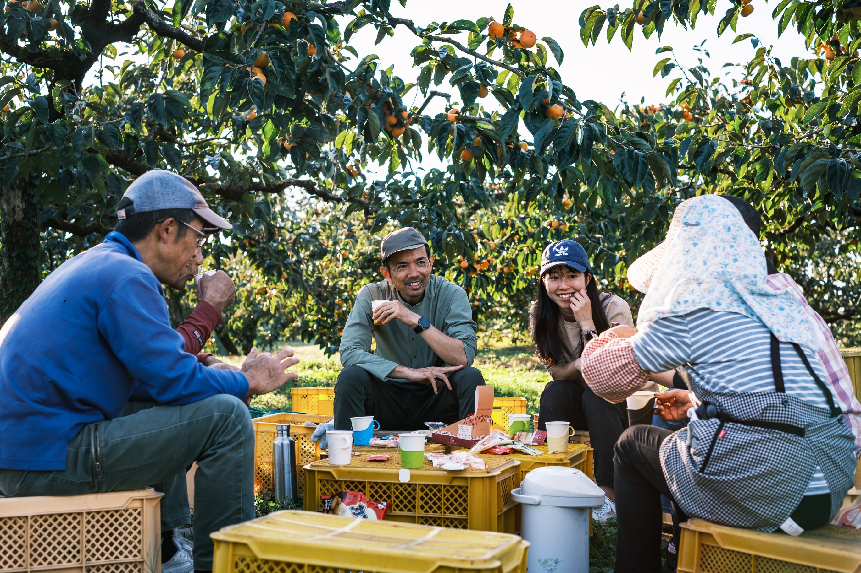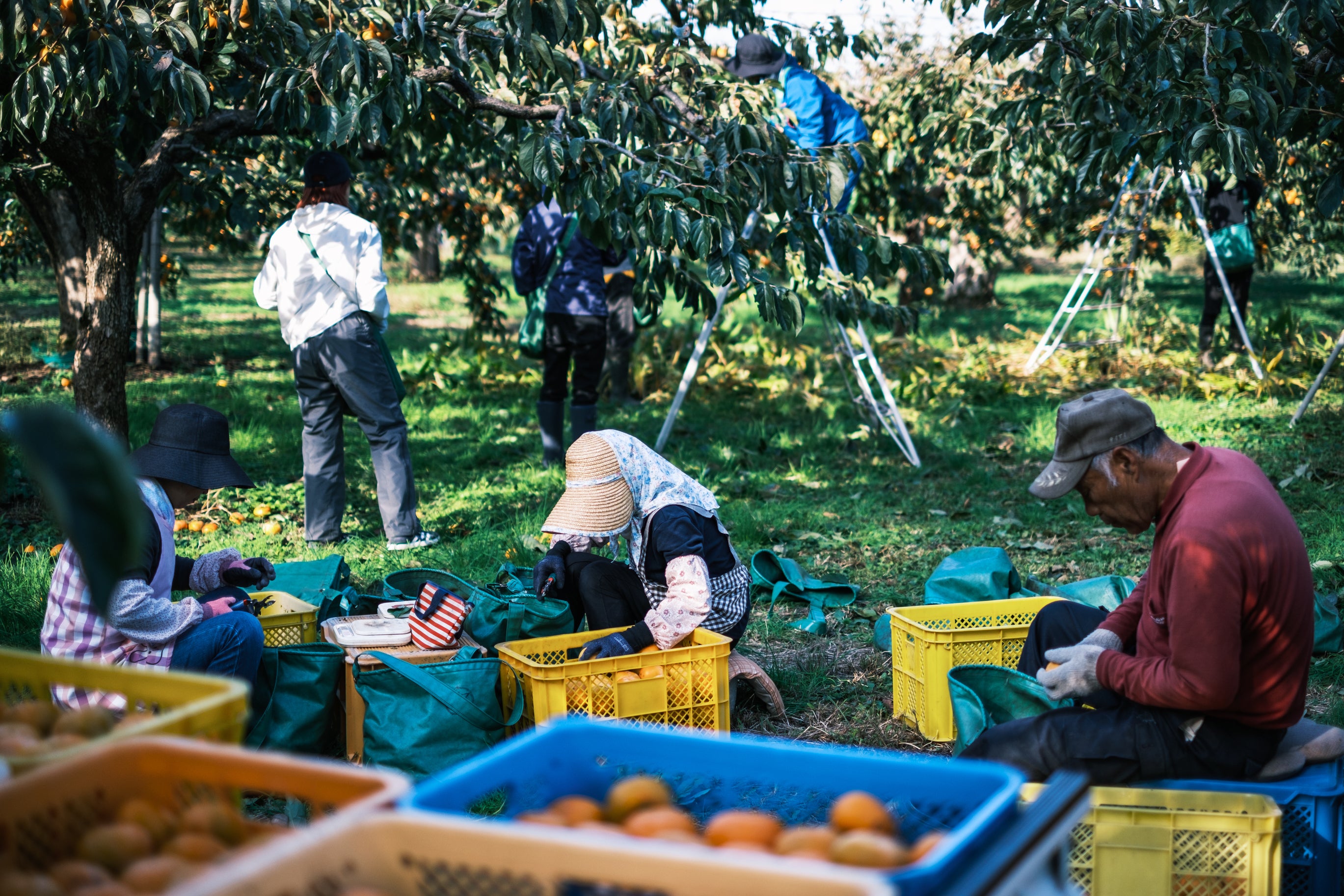 青空の下で、地元のベテラン柿農家さんたちと一緒に収穫の楽しさを満喫できます。柿の木から大きな柿を収穫する喜びは格別です!作業の合間には、鶴岡の飲食店からテイクアウトした美味しいランチも楽しめます。新鮮な空気の中で、心も体も満たされるひとときをお過ごしください。