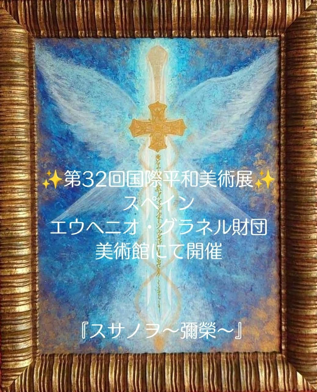 2024/10/11 12:00WORLD PEACE ART EXHIBITION 2024 第32回国際平和美術展出展作品『スサノヲ~彌榮~』 サイズ F10○会期:2024.10.17(木)~22(火)○会場:スペイン サンティアゴ・デ・コンポステーラエウヘニオ・グラネル財団美術館にて開催ビジョンで見せられたスサノヲ様の深海のようなブルーのエネルギー中心には、御剣の御力とイナダヒメ様の柔らかなエネルギーを平和の象徴である白い鳩で表現しました************* ~高次元メッセージ~いやとこしえに、みなが喜び笑顔でわかつ豊かなる国************* もっと見る