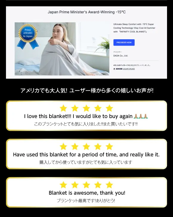 多くのご支援様の熱い要望で、今回は夏にもお使い頂ける冷感ブランケット「INFINITY COOL BRANKET」第2弾を届けに参りました。