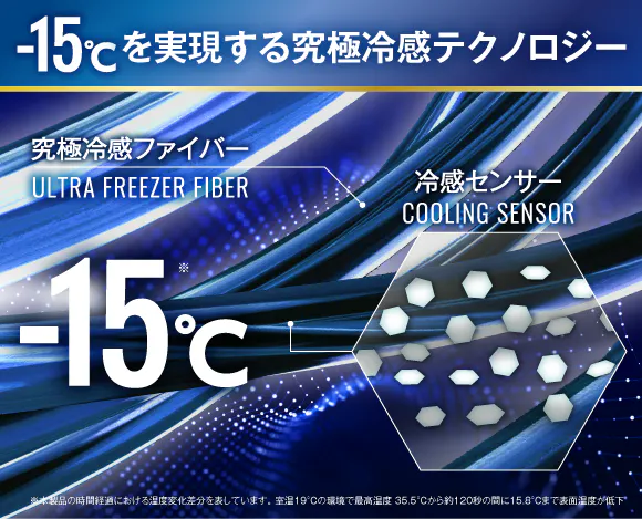 厳選冷感繊維と革新的冷却センサーが一体となり、前代未聞のマイナス15℃冷却を実現。