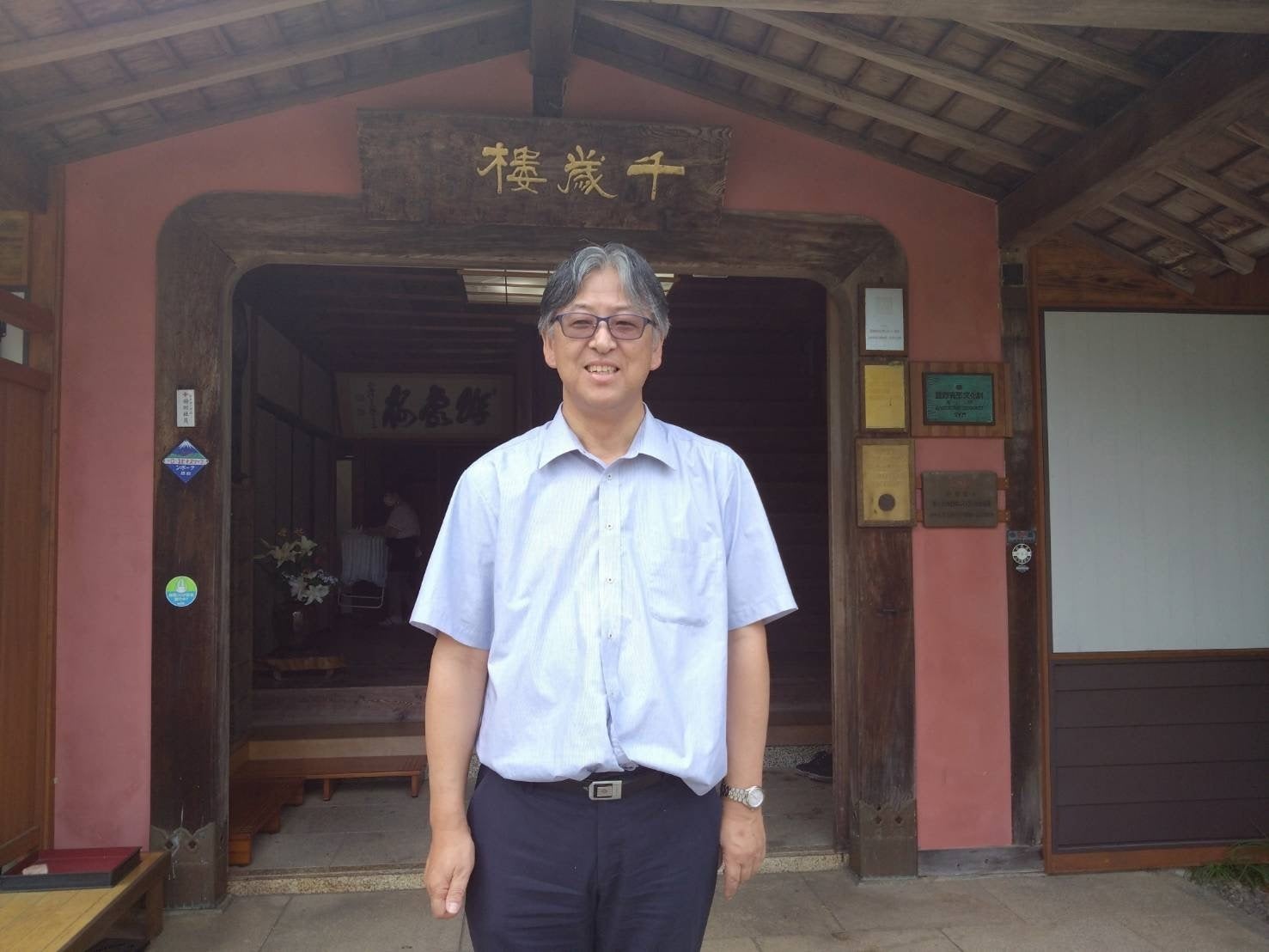 千歳楼を守る会会長の堀行夫と申します。千歳楼のある養老町に生まれ今でも養老町で暮らしています。この千歳楼は養老町だけでなく日本の大切な文化財として残していかなければならないと思い、同じ思いの同志と千歳楼保存の活動を続けさせていただいています。