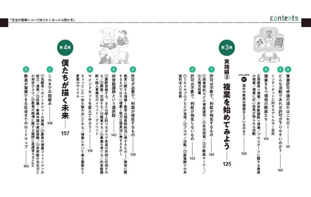 先出しで、目次を公開させていただきますね!実はあんな先生やこんな先生の複業事情もふんだんに盛り込まれています。