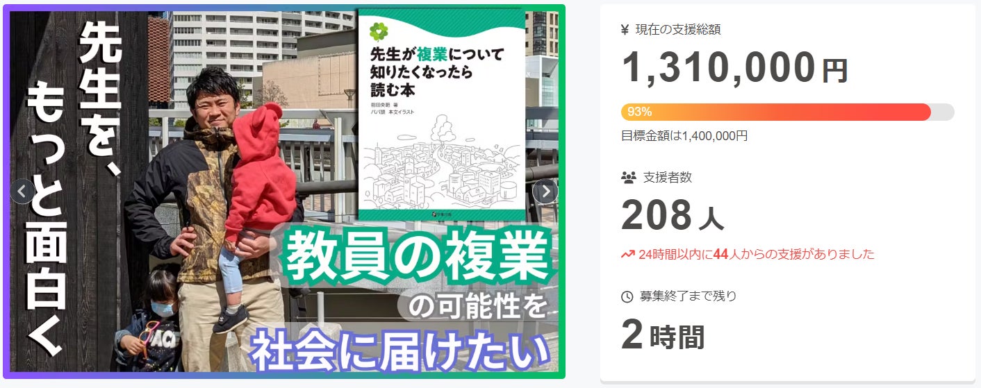 ついに教員の複業のクラウドファンディングが終了目前となりました。