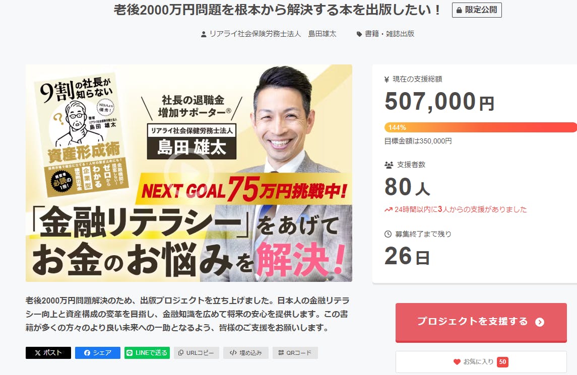 80名もの方にご支援いただき本当に感謝です!