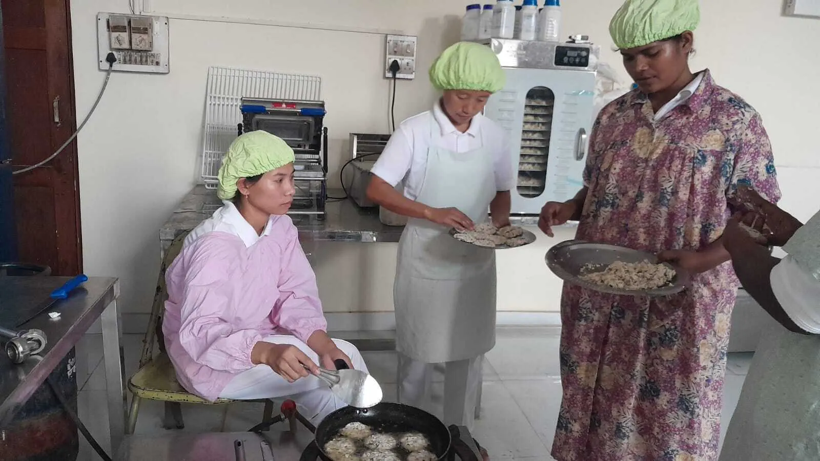 また、もう一人の女性の卒業生・ジー・パン(2023年度卒)も無事家族のところに戻り、国軍からの奇襲に怯える場所で暮らしながらも、僻地に週に数日間出張して活動しています。研修中は小さい子どもも含めた家族の安否の心配の中にありながら、どんなことでも吸収しようという積極性にあふれていました。仕事に復帰してからすぐ、地元の特産物生産事業に関わるようになり、農村女性の集会中にインドで学んだことについて発表する機会を得、食品加工やマーケティングについて話しました。女性達からは「資金がないとできない」という反応が返ってきましたが、彼女がインドで学んだ食品加工は、シンプルで資金がなくてもできるものばかりのため、今後加工技術の実習を計画している旨、報告がありました。