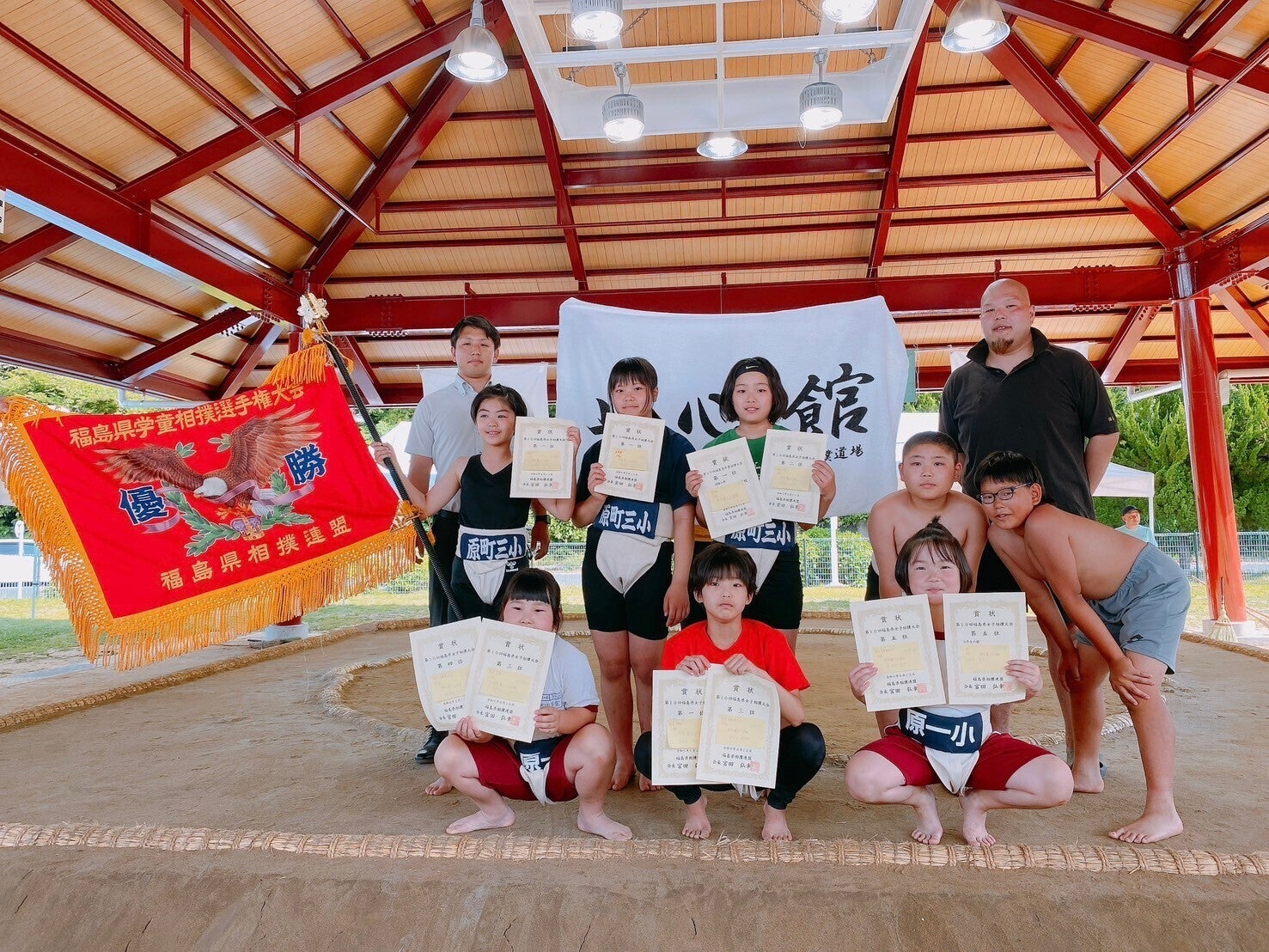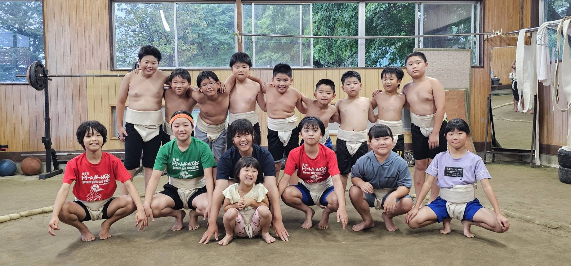 2024/07/11 09:46本格的に梅雨入りし生憎の天気ですが、選手達はスーパー笑顔で稽古しています。夏休みも近づく中で、一人一人が目標をもって自分に向き合って頑張っています。毎週水曜日はほぼ全員揃うので記念に一枚撮りました!この笑顔最高ですよね!!!少し道場についてお話をします。エピソード13人の選手しかいない所から道場を立ち上げ、相撲が好き、やってみたい、僕たちが地元を盛り上げると子供達の声から始まりました。コーチと思考錯誤しながら、練習場所の確保、練習方針など二人三脚でやりながら続けてきました。卒業や転校など選手が少なくなり道場として辞めるかどうかを迫られる場面がありましたが、連盟の仲間や、他県の監督、コーチの方からも応援頂いて踏みとどまり、「一人でもやりたい子がいるなら俺達でやれる場所を提供して行こう、いつか皆に伝わるし、繫がるようになる」とコーチと話しコツコツと続けてきました。昨年のわんぱく相撲に一人の女の子が参加してくれました。その子は運動神経も良くバスケットボールをしていました。大会では厳しい結果になってしまいましたが、悔しいけど楽しかった!相撲をやってみたいと道場にきてくれました。人数も少ない中で、女の子一人。入団ではなく体験にしましょう、女の子だしすぐに辞めるかもしれないと保護者の方と話しをし様子を見ていました。ところが、女の子はめきめき力をつけ、南相馬市の大会で2位に入賞することができました。「相撲はめっちゃ楽しい」と満面の笑みで私達に話してくれました。続けてきてよかったなとコーチと話しをした事を覚えています。その女の子は学校でも、「相撲楽しいよ!ちょっと痛いけど!」と友達に話しをし、一人また一人と仲間を増やしてくれました。続く・・・・・・私達道場は、小さな事からコツコツと積み上げて今の道場になりました。 現状がゴールではなく、スタートラインだと考えております。 目標は日本一ですが、相撲を通して仲間をつくって努力し、思いやりの心を育んでいければと考えております。女子日本一に向け!皆様引き続きのご支援の程よろしくお願い致します。 *年少さんを面倒みている6年生の一枚 もっと見る