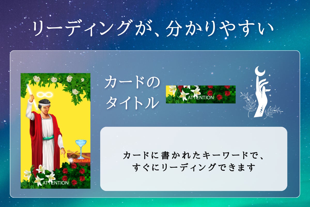 エンライトメントタロットは、未来を明るく照らす導きとなります。不安や心配がある時でも、このタロットカードを引くことで、新しい可能性や希望に満ちた未来への道が開けるような喜びを感じることができるでしょう。