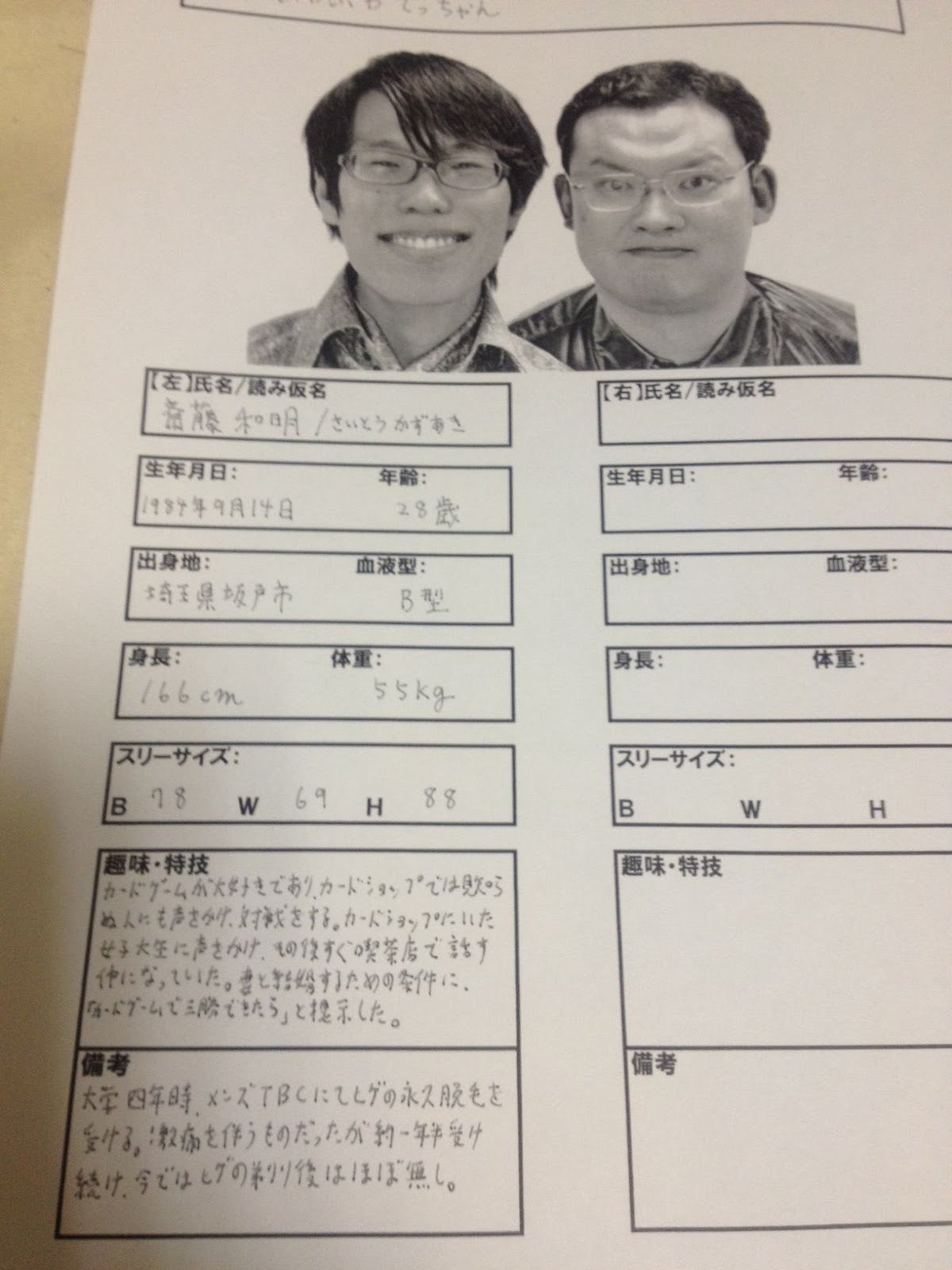 養成所でオーディションを受けるときのプロフィールシート