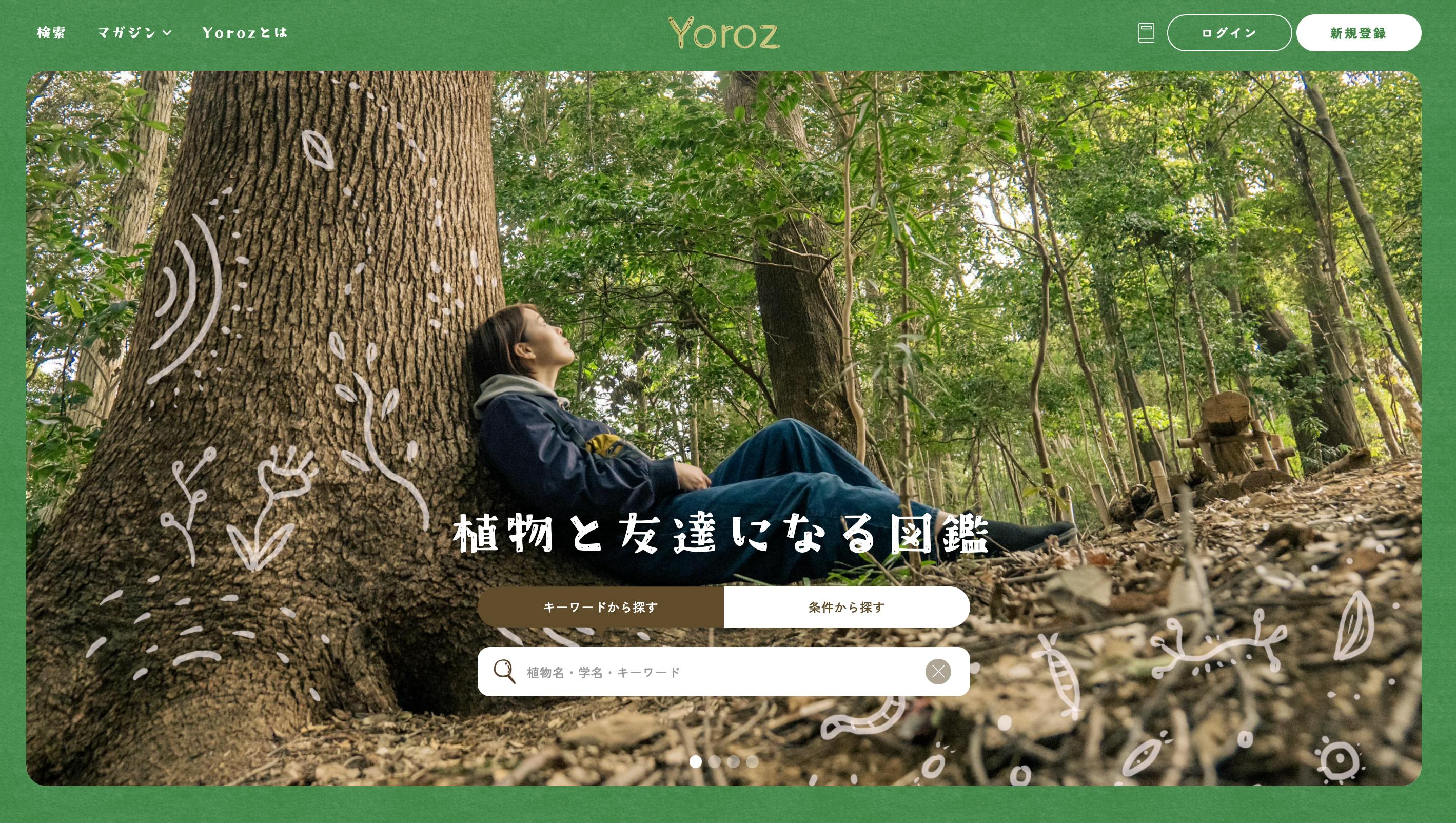 Yorozは、フォレストガーデンを作る上で欠かせない植物の知識や特徴を理解するための、オンライン上の図鑑です。