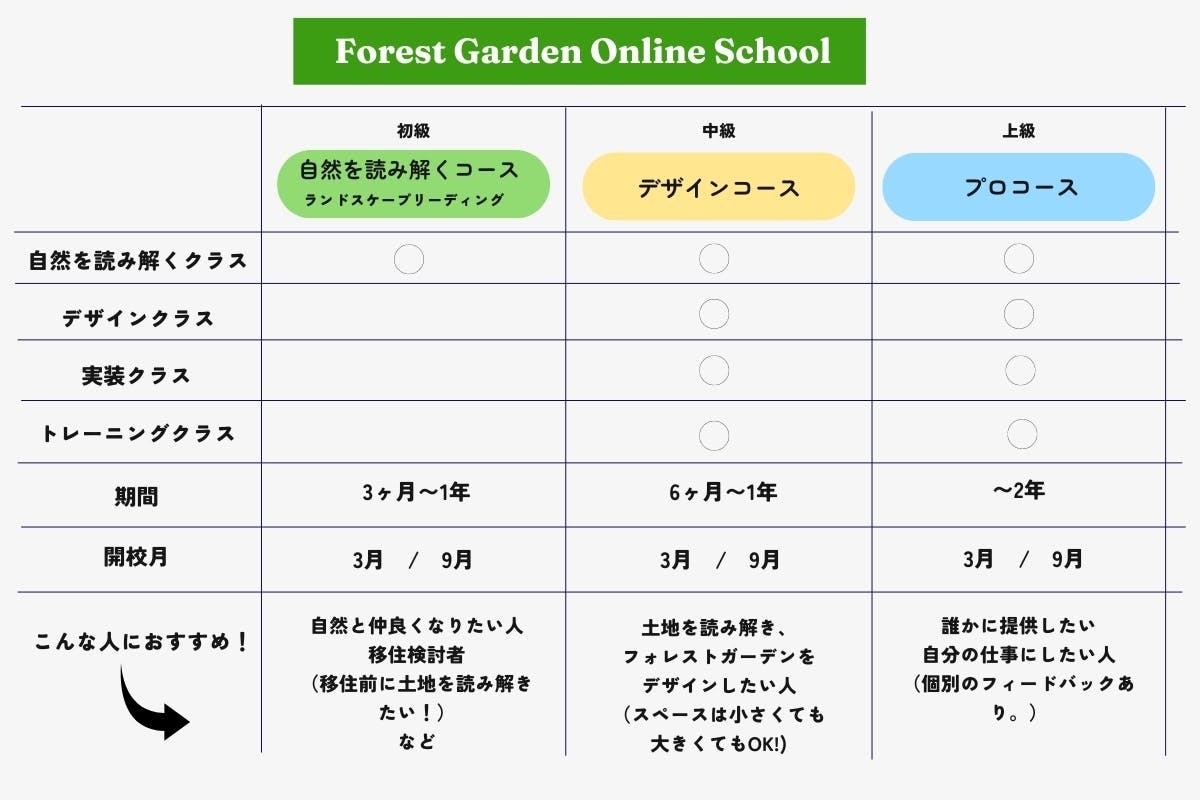②自然を生かして、森をデザインし、実際にどのようにつくるかを学べる「フォレストガーデン・オンラインスクール」