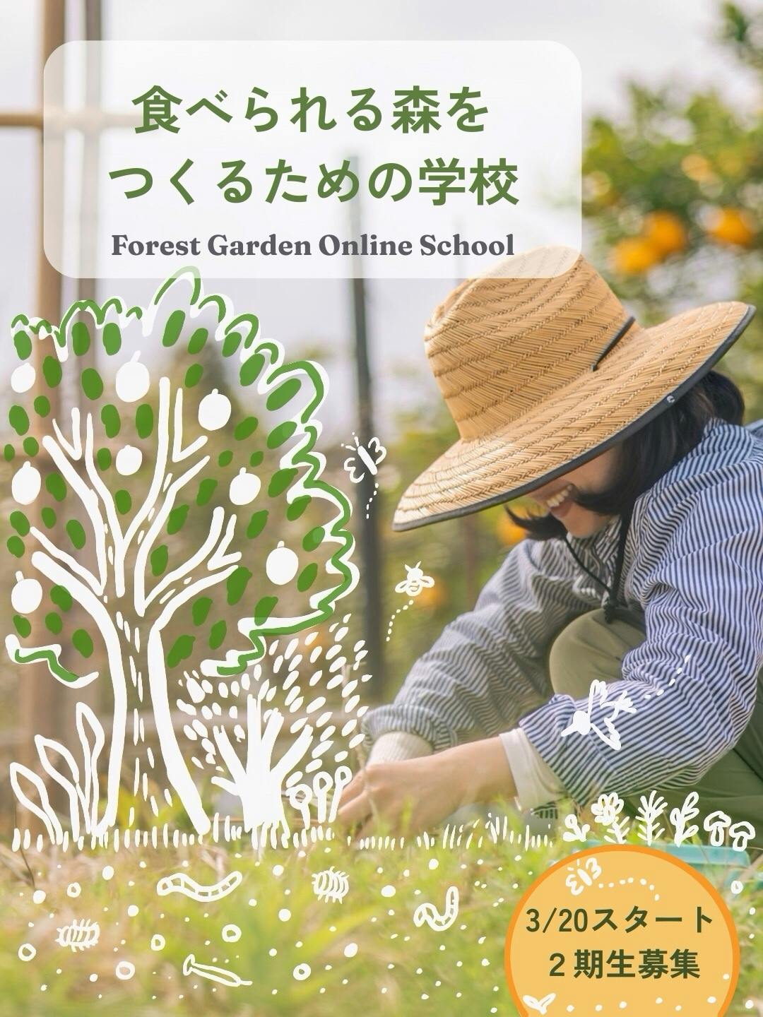 こんにちは!Permaculture Design Lab.のしょうちゃん、若菜、JUNです。まずは、あらためて。このクラウドファンディングを通じて応援してくださったみなさん、本当にありがとうございます。みなさんのサポートとともに、オンラインスクールの0期生が集まったところから、この「食べられる森づくり」の学びは動き出しました。そして今回、記念すべき2期生の募集をお知らせできることになりました!【2026年3月20日(春分)スタート】食べられる森の学校 〜Forest Garden Online School〜2期生 募集開始|定員50名(満席後キャンセル待ち)日本中に1000の食べられる森をつくろう。あなたの「今ここ」にいる場所からはじめる、食べられる森づくり。家の庭・ベランダ・畑・山林・地域の空き地——「いまここにある場所」から、いまのあなたにできるやり方で。私たちは2025年〜2035年の間に、日本中へ1000の食べられる森を増やすことを目指しています。このプロジェクトは、食べられる植樹だけでなく、暮らしの中に根づく森づくりとして、豪雨・高温・干ばつをケアするための 「水の巡りのケア」身近な生態系である 「生きもののつながり」まで含めて、土地と暮らしを整えていく学びです。食べられる森って?どんな森?ナッツ・フルーツ・ベリー・野菜・山菜・ハーブ…もしかしたら、あなたの好きな趣味(クラフト・手仕事/生きもの観察 など)を、さらに深めてくれる植物たちも、「森のように」育てていけるかもしれません。このスクールは、あなたの場所で「食べられる森(フォレストガーデン)を育てはじめるためのオンラインスクールです。「自然や生きものとのつながりって、どういうことなんだろう?」そんな素朴な気持ちから出発し、自然やいのちが生かされ合う仕組みを理解しながら、暮らしの中で少しずつ形にするための「森の設計図」と「実装プラン」をつくっていきます。これまでの参加(0期+1期)1年前に始まったこのスクールには、累計143名が参加しました。各地に森づくりを学んでいる「森の種」:104名森のデザインを段階的に進め、準備に入った「森の苗」:22名森が育ちはじめた場所:3つ参加者は日本各地から、そしてまさかの海外からも…!?(※海外からのご参加も大歓迎です)いま、それぞれの土地と暮らしに、唯一無二の森が生まれようとしています。(0期生のデザイン紹介や体験談も、順番に紹介していきますね)学び方(完全オンライン/でも実践型)完全オンライン(自分のペースで学べます)でも実践型:動画で学ぶ → 場所の可能性を読み解く → レッスンでデザイン → 実装プランまで講師フィードバック&Q&A(質問は事前提出OK/欠席の方向けにアーカイブあり)参加者同士の交流や学び合いもあり、共に進む時間が大切な場になっています。今回募集する2コース(2026春)【1】自然を読み解くコース 2026春太陽・風などの存在を改めて知覚し、つながりを深める。いきものたちの存在や気配、生態系のふるまいから、「今ここ」の自然情報を理解する感性とスキルを身につけます。【2】フォレストガーデン・デザインコース 2026春食べられる森に必要な自然・生態系の基礎知識を体験的に学びながら、土地の要素だけでなく、あなたという「人」の暮らしのニーズもつなぎ合わせ、唯一無二の“あなたの食べられる森”のデザインと実装プランを完成させます。※森を実際に作り上げるための実践スキルを学ぶWSやコースも用意しています。まずは気軽に(無料)無料オンラインプレイベント(アーカイブ参加OK)3/1(日)20:00〜21:30https://1000forestschool2.peatix.com/森と水を体験したい方へ(現地ツアー)ツアーは毎月開催しています。今回は、3/8(日)フォレストガーデンツアー3/9(月)水循環の回復ツアーhttps://www.permaculturedesignlab.com/news/iL91NCnX※4月のスケジュールも記載しています。【詳細・お申し込み|定員50名/満席後キャンセル待ち】3/3(火)まで早割(お申し込みは3/19 23:59まで)スクールページはこちら:https://www.permaculturedesignlab.com/forestgarden-onlineschool最後に、ひとつだけ。『あなたは、どんな場所に森をつくりますか?』お庭やベランダでつくりますか?それとも畑や山林、地域の空き地でしょうか。森をつくるという素敵な人生の過ごし方を、一緒に始めてみませんか…?気になる方は、まずは3/1の無料プレイベントへ(アーカイブ参加もOKです)。みなさんにお会いできることを楽しみにしています!Permaculture Design Lab.庄司正昭、大村淳、川村若菜