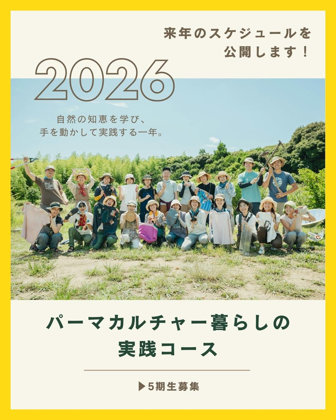2026年度の「パーマカルチャー 暮らしの実践コース」のスケジュールを公開しました。