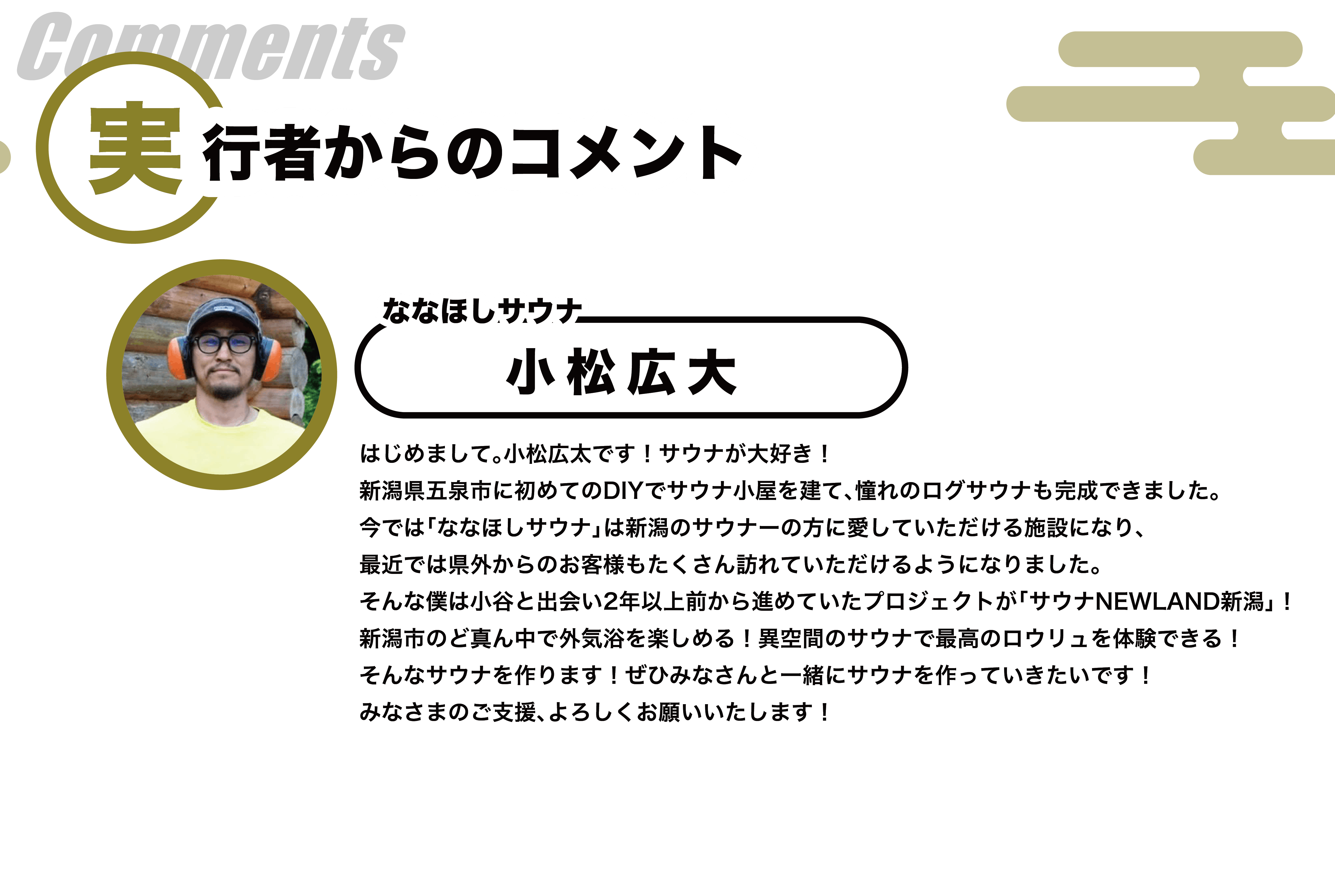 僕らの夢であるにいがた古町の活性化、そのためにサウナの力を通じて新たなランドマークとなる施設を作ります!ぜひご支援の程よろしくお願いします!