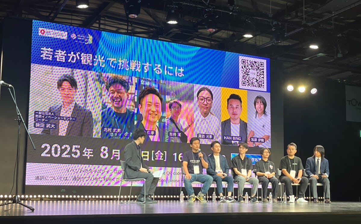 観光クロスオーバーサミット2025内のトークセッションにコンテストファイナリストの中から6名が登壇。トークテーマ「若者が観光で挑戦するには」の中で、さすらい食堂が挑戦している姿勢などについてご紹介させていただきました。