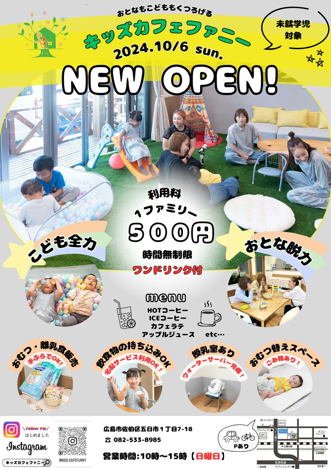 今回、新たにキッズカフェ「ファニー」のチラシが完成しました!スタッフ一同、心を込めて作成し、賑やかで楽しい雰囲気に仕上がっています。