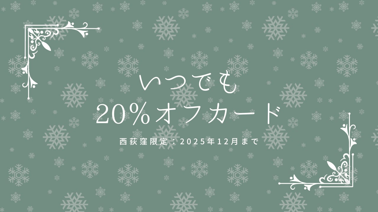 こちらのカードは、フヅクエ西荻窪限定でいつでもお会計が20%オフになる、大変お得なカードです。