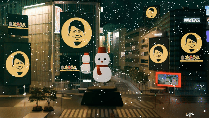 ①『雪』を連想する映像を渋谷のさまざまな場所で流します。