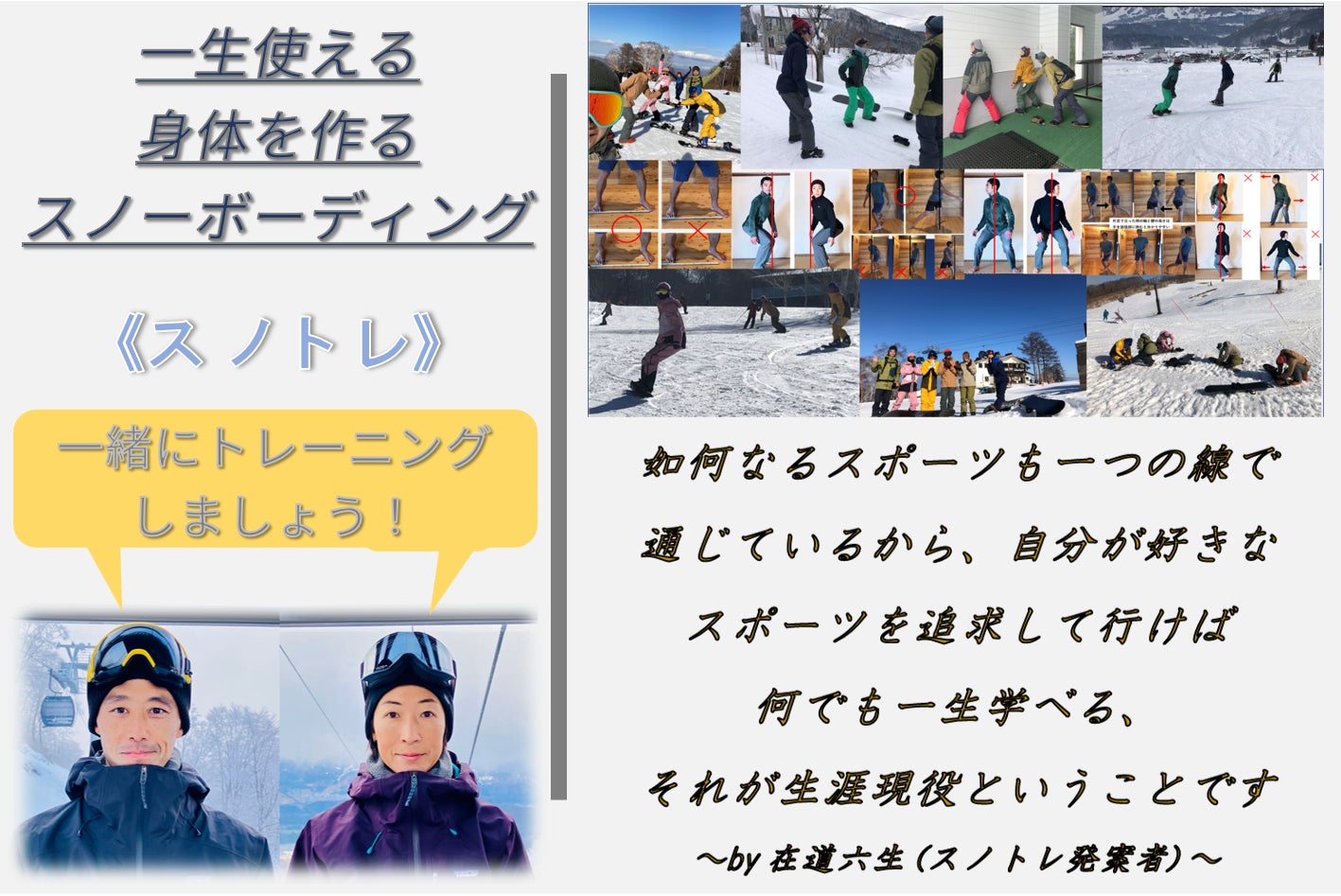 最後に、この本を書くきっかけになった在道六生先生発案&しぜんや実践の『スノトレ』、雪上のパーソナルトレーニングをリターン商品にします。
