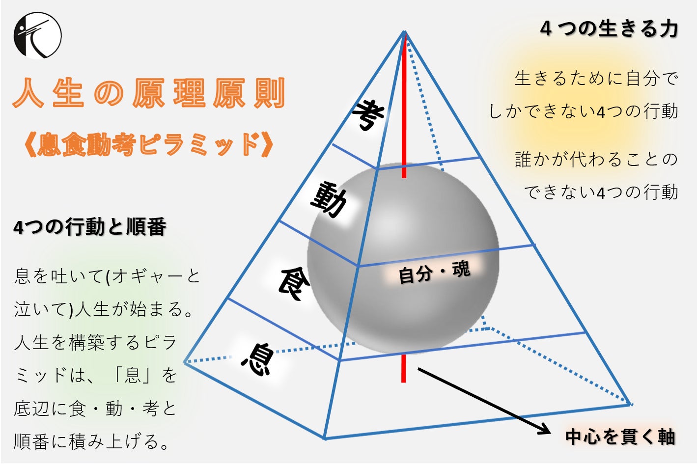 人生の始まりである『息』を底辺にピラミッド型を構築すると生き方・考え方は自然に定まる