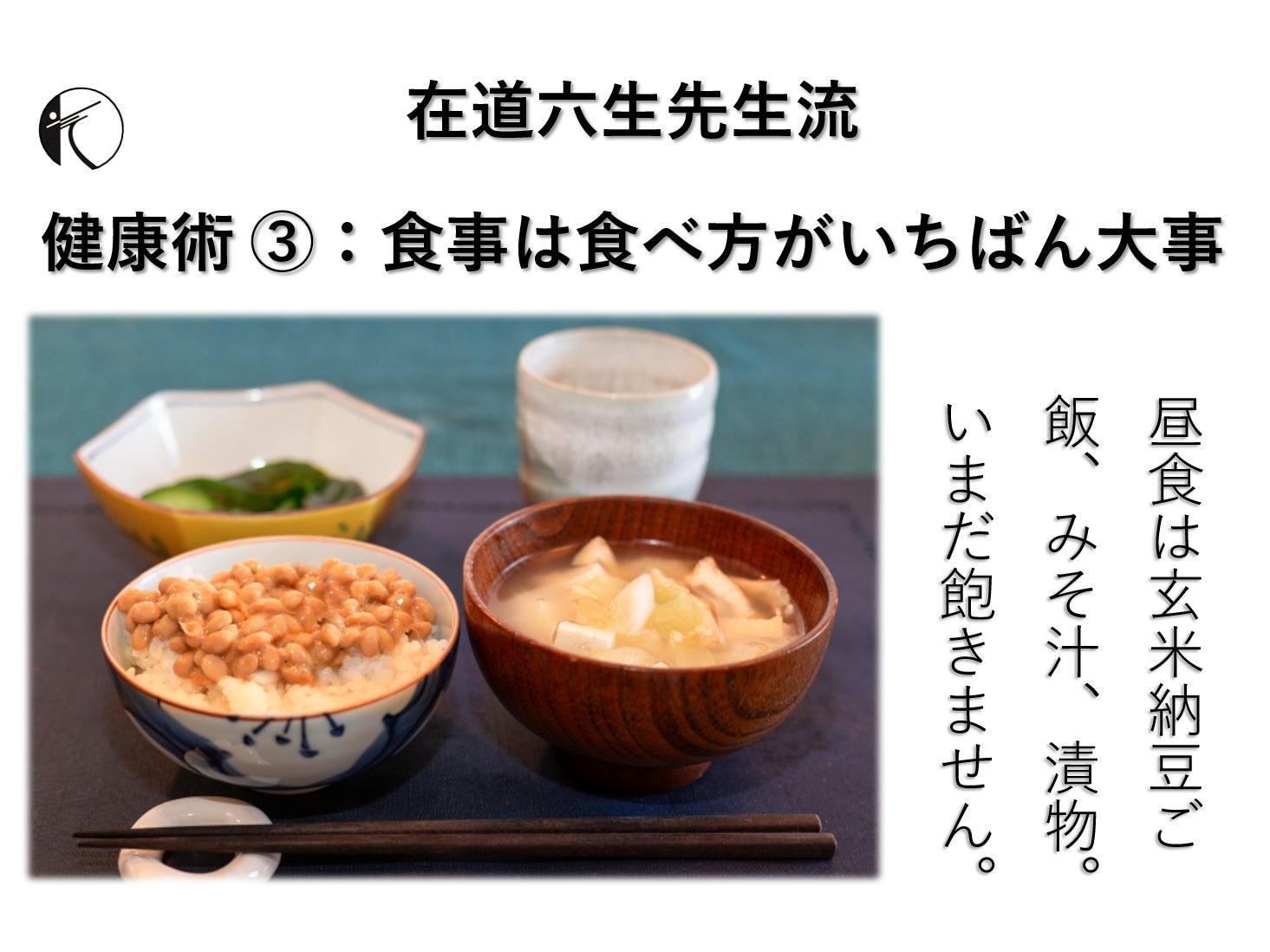 最後に、在道六生先生のユニークな健康術をチラッとお見せいたします!
