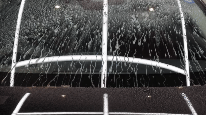 ガラスに付着した汚れを洗車をしてしっかり落としてください。その後、水を拭き取ってください。