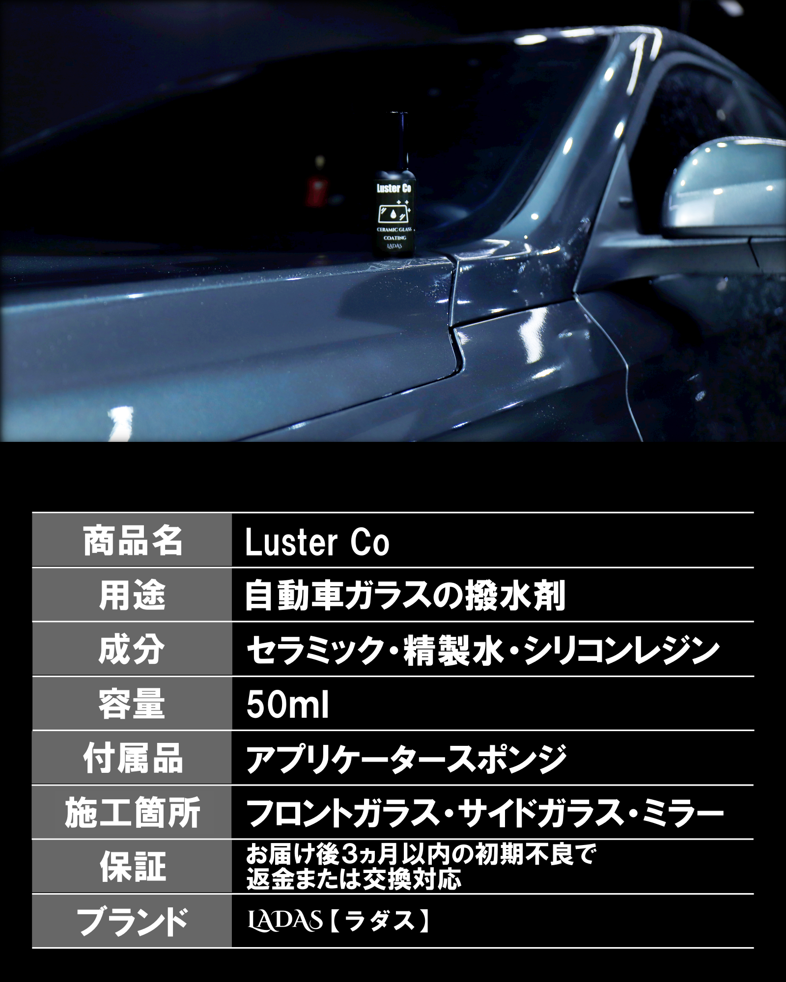 LADASが開発したセラミックガラスコーティング「Luster Co」