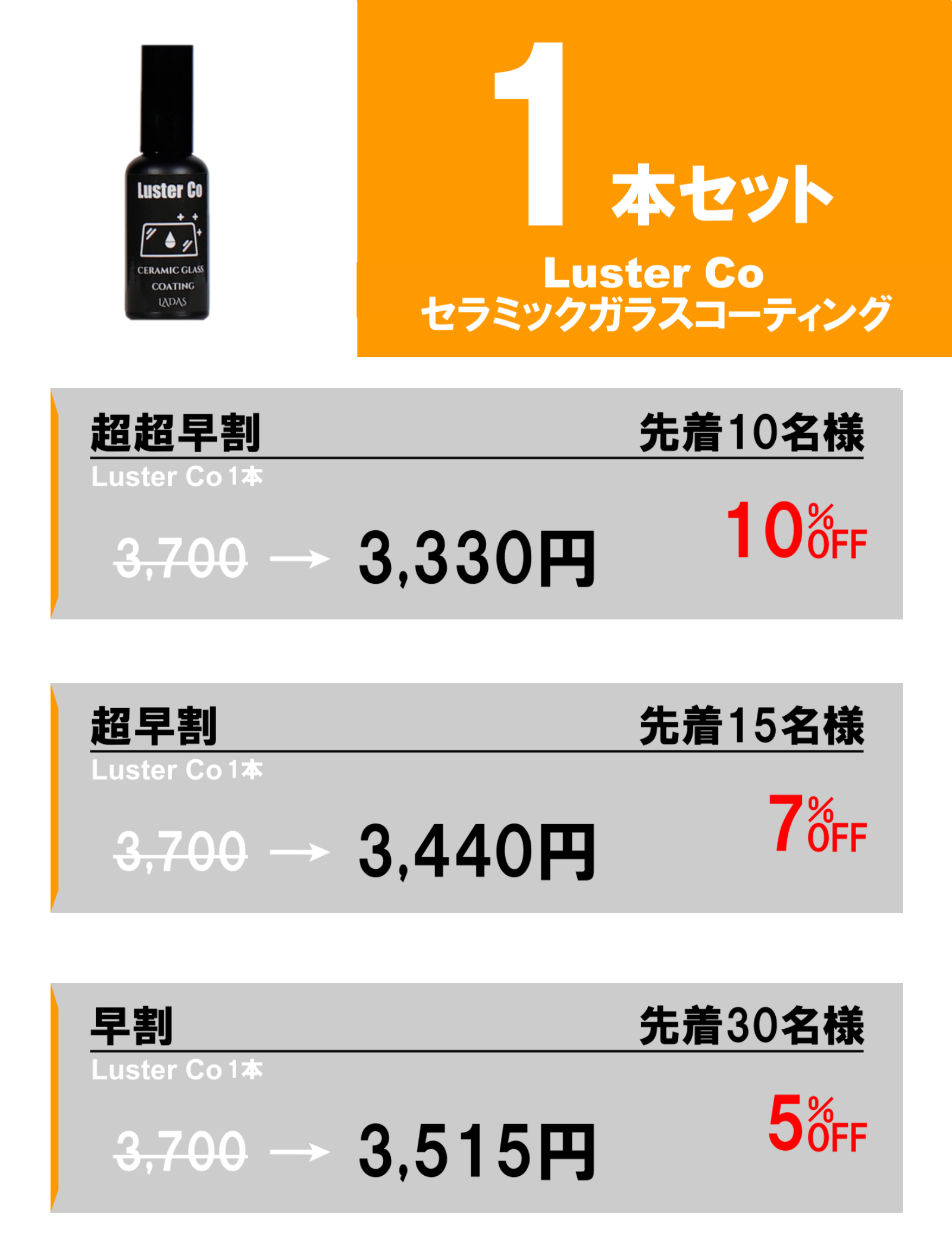 「Luster Co」はセラミックによる被膜化をすることにより高耐久を実現しており、約3ヵ月の高耐久を実現しております!