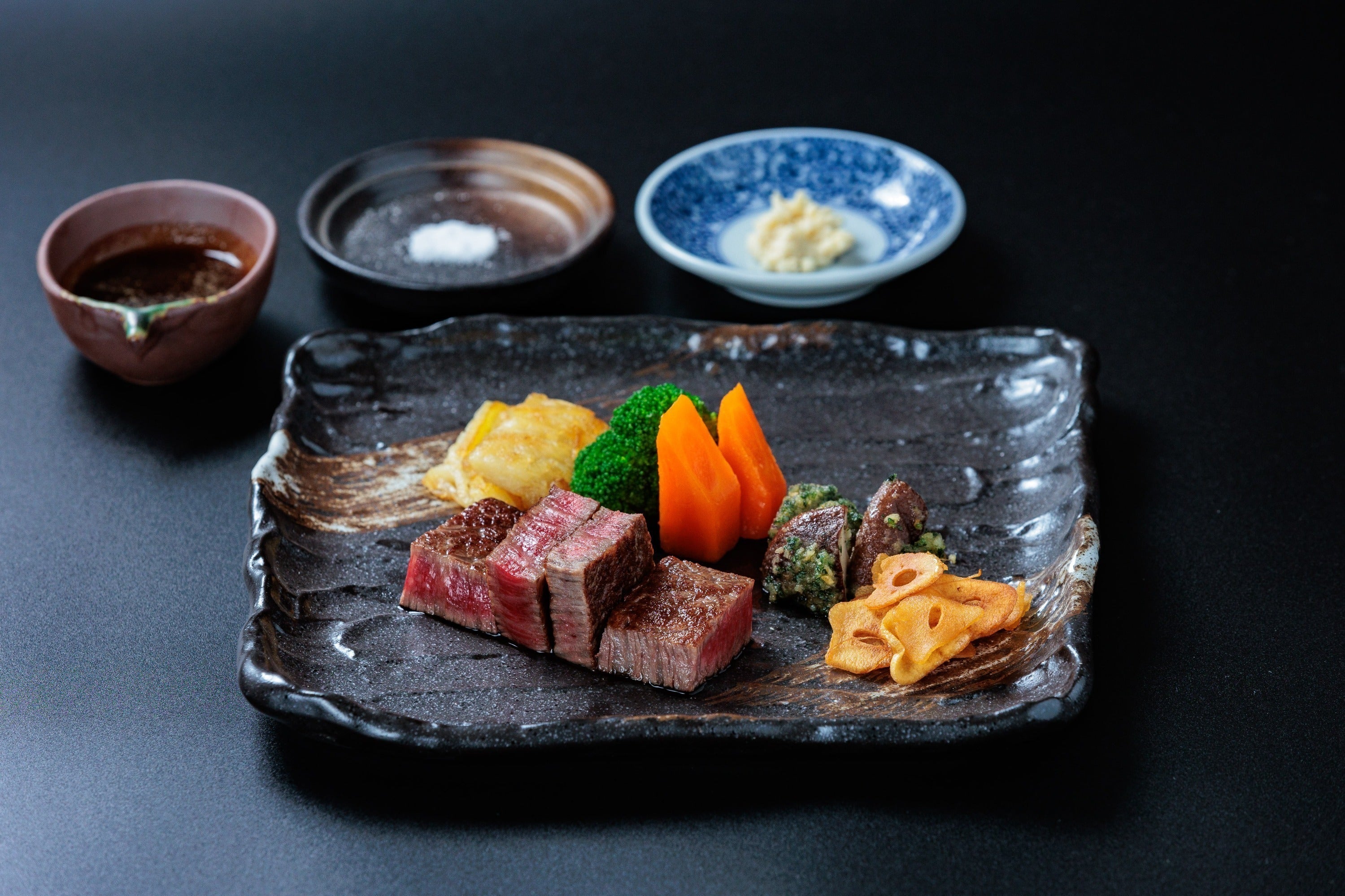 食事では地元の鳥取県産オレイン55を中心に島根和牛などから厳選して使用。豊富な海産物を使った鉄板フレンチを堪能していただけます。