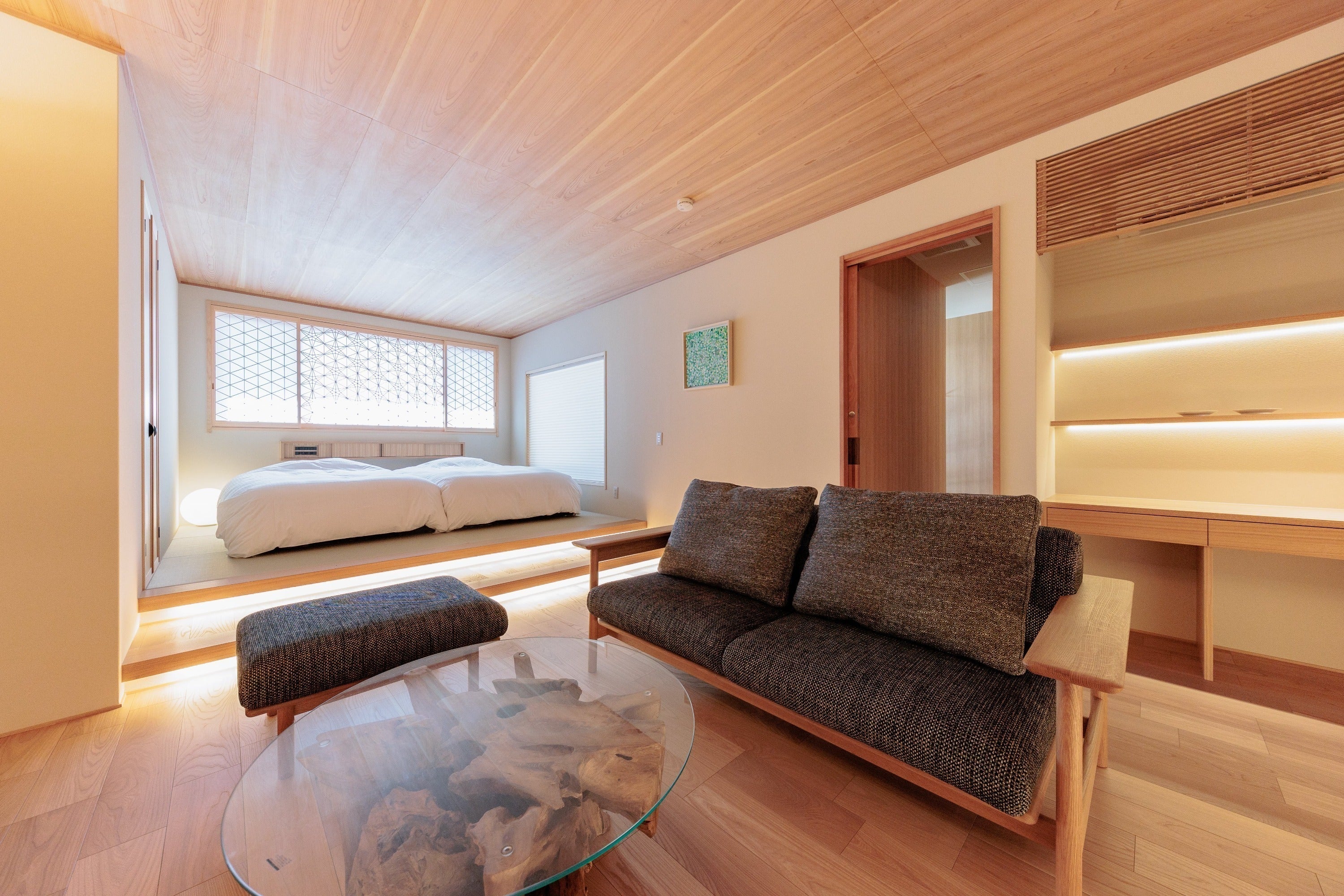 建築工事に関しては絶大の信頼を誇る積水ハウスが担当しており、ラグジュアリーホテルとしては初の試みとなっております。建物の頑丈さ、4棟(静護、清泉、古今、芽吹)それぞれに工夫をこらした内装は圧巻です。