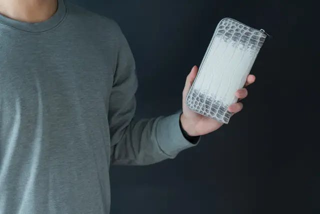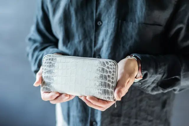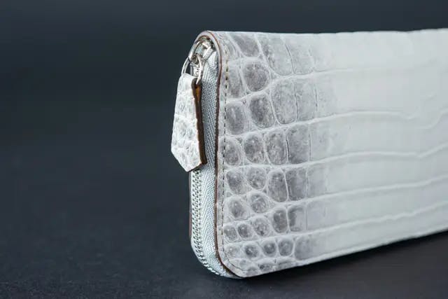 財布職人が最小の限界に挑んだラウンドジップ「ヒマラヤクロコダイルの極小長財布」