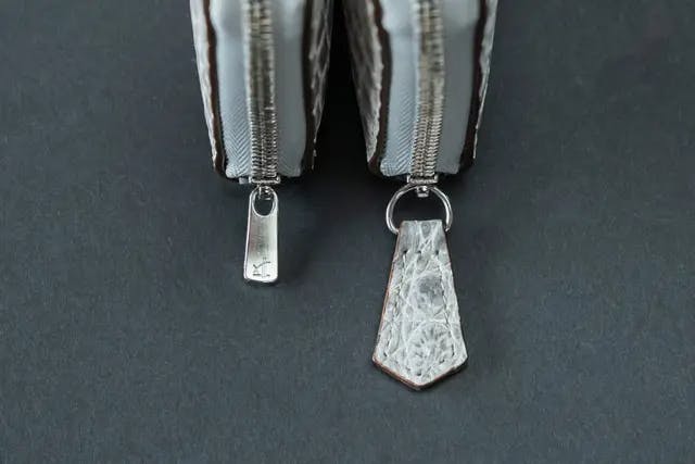 キラキラと輝くシルバーカラーの金属ファスナーは高級感と耐久性を兼ね備えたYKKが生んだのファスナーです。