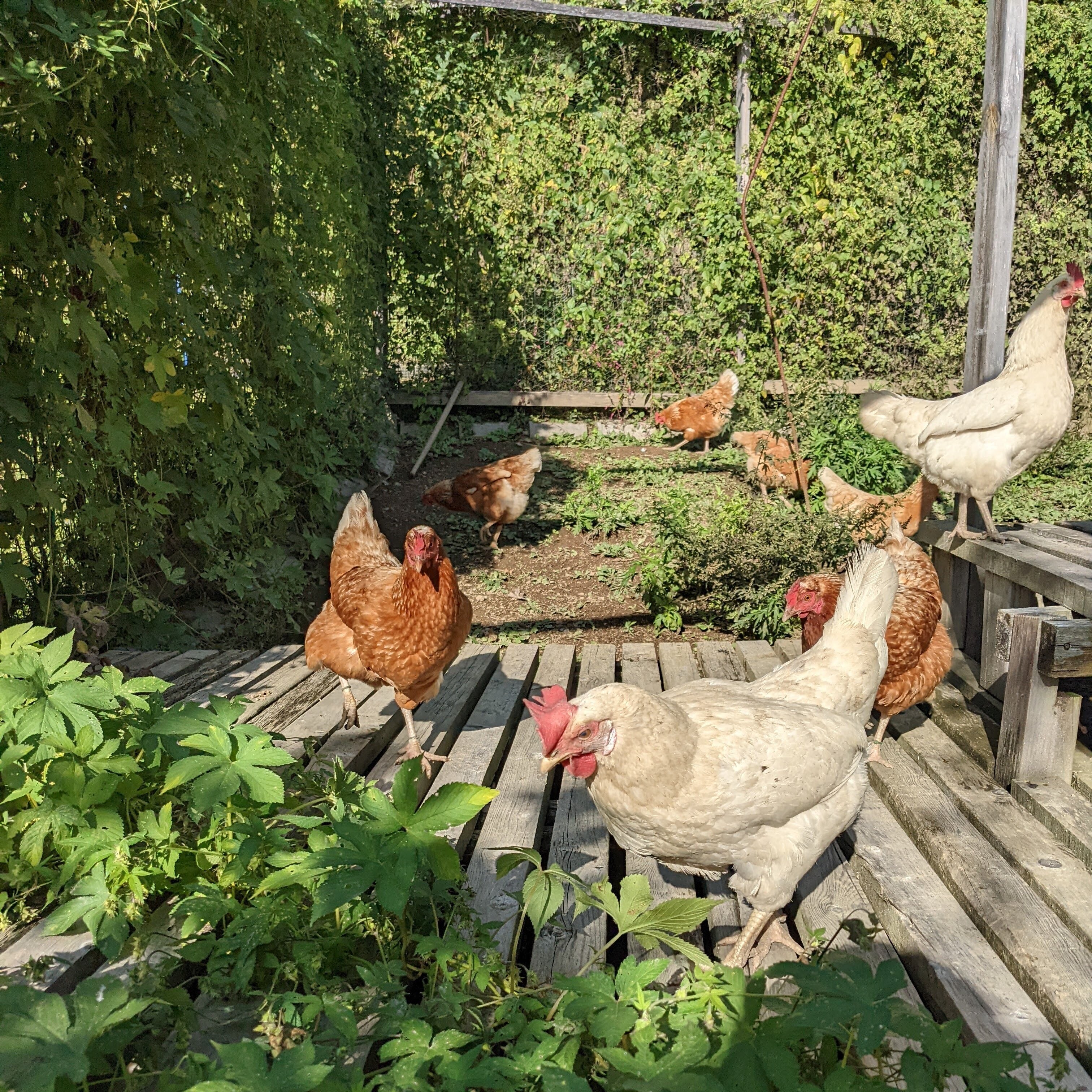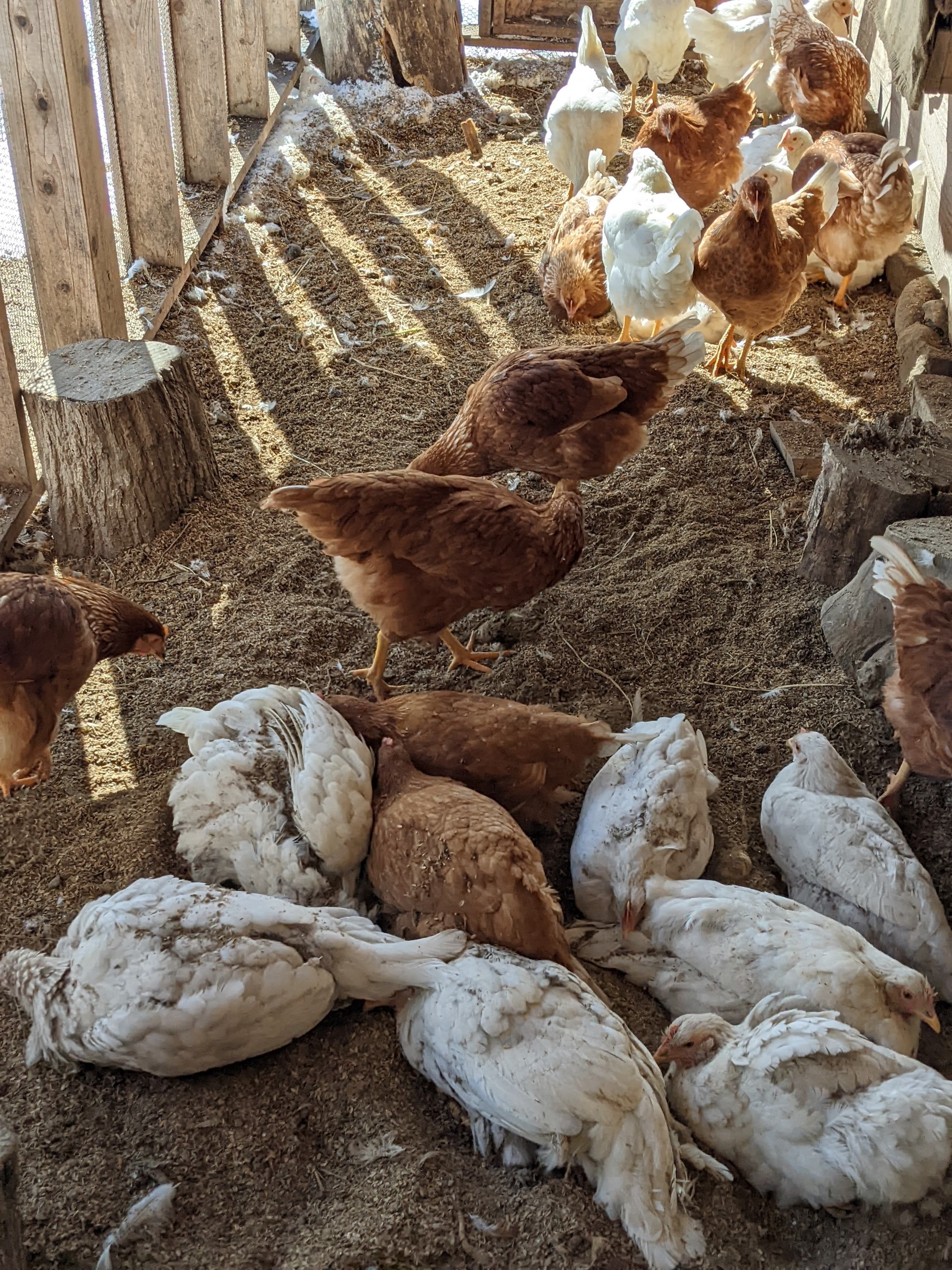 100羽用の鶏舎で60羽を飼ってみたら、当たり前ですが、鶏がのびのびとしています。冬場、外に出られないことが原因のイジメ問題も解決!良かった!
