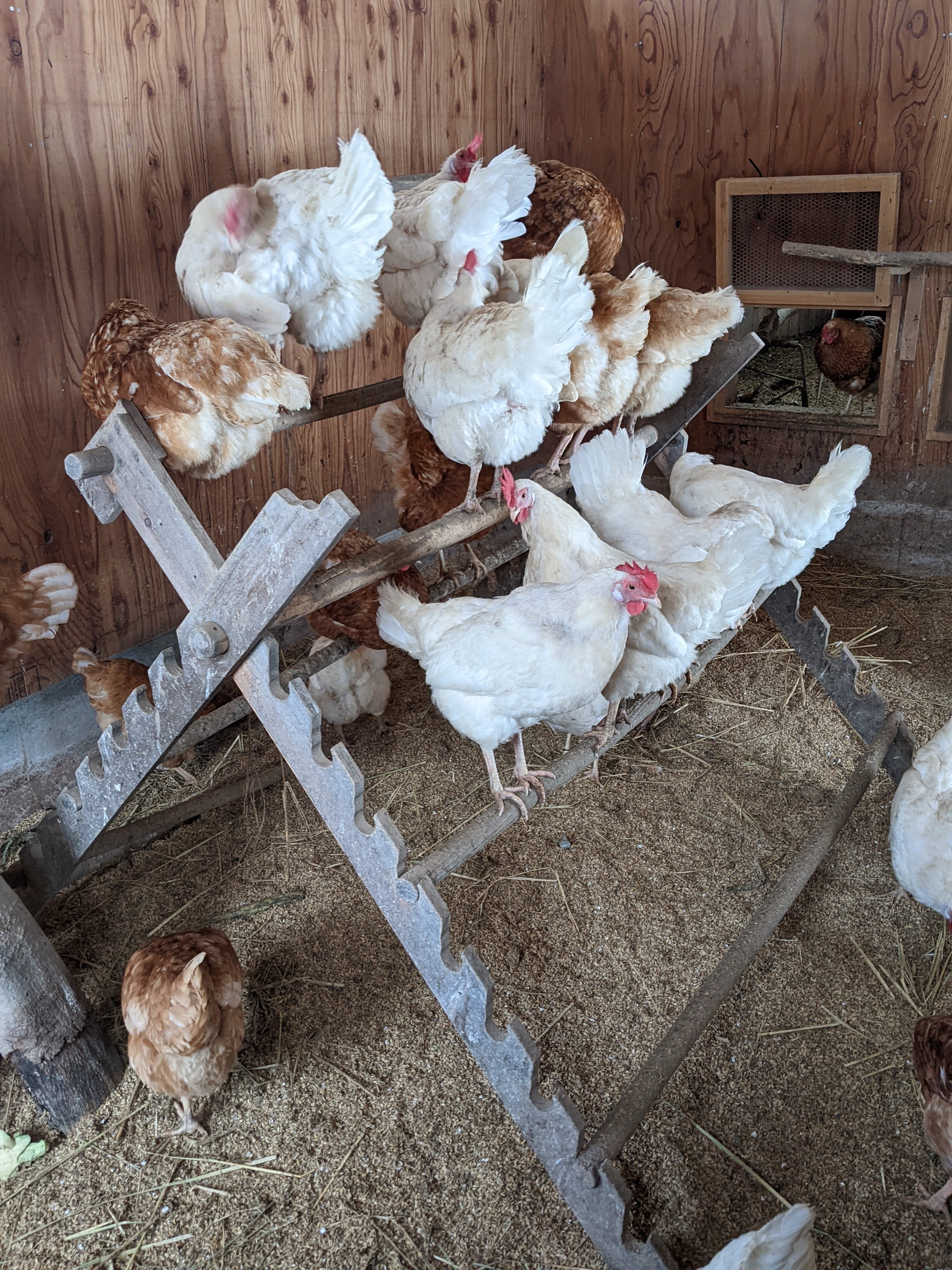 なぜなら、うっかり回収が遅れた場合、産卵箱には卵こんもり、そこへ足が汚れたトリが入ったら、卵が汚れてしまい、洗わなければならなくなります。もうガックリです。