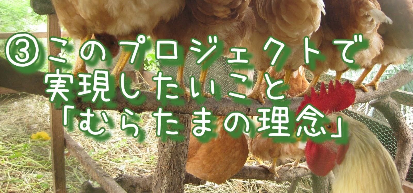 このプロジェクトで実現したいことは、むらたまのミッションを広く知っていただき、事業継続につながる鶏舎増築を実現することです。むらたまのミッションをキーワードで表すと次の4つになります。