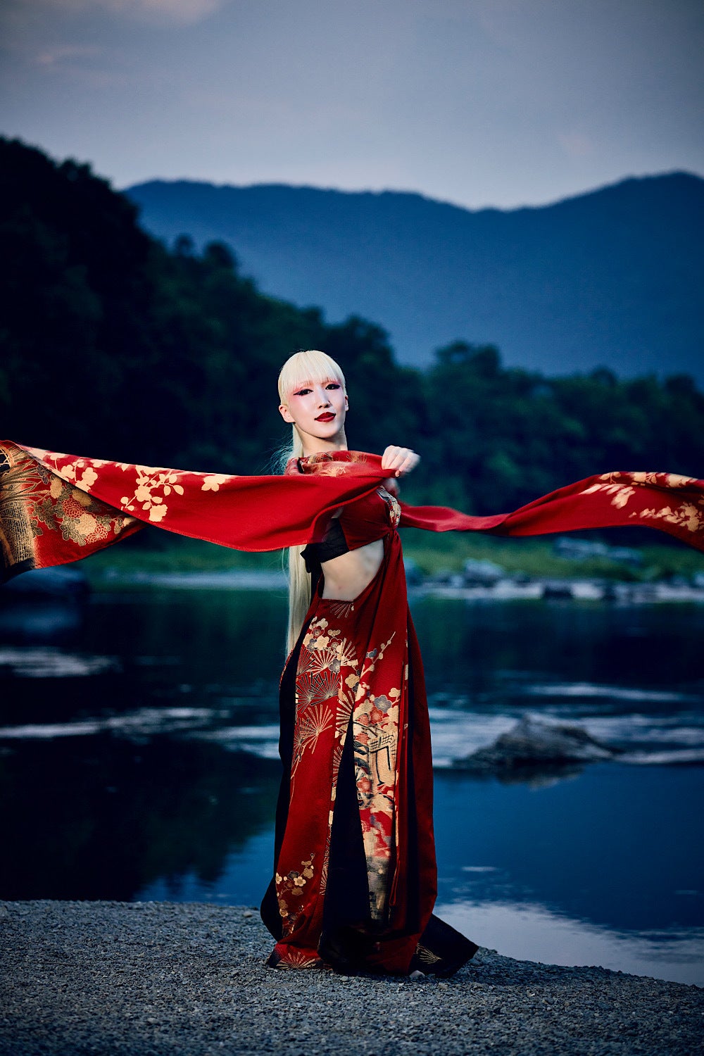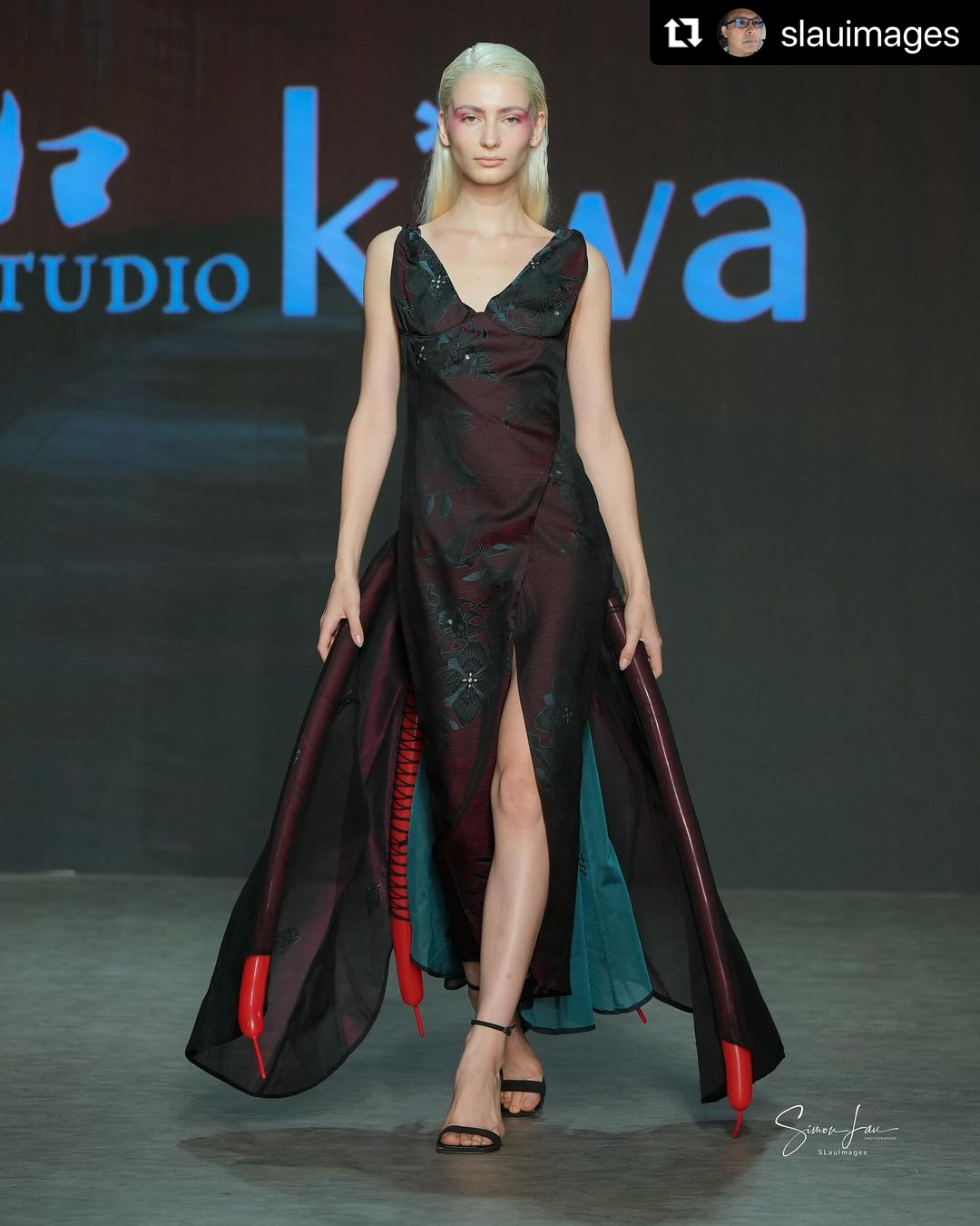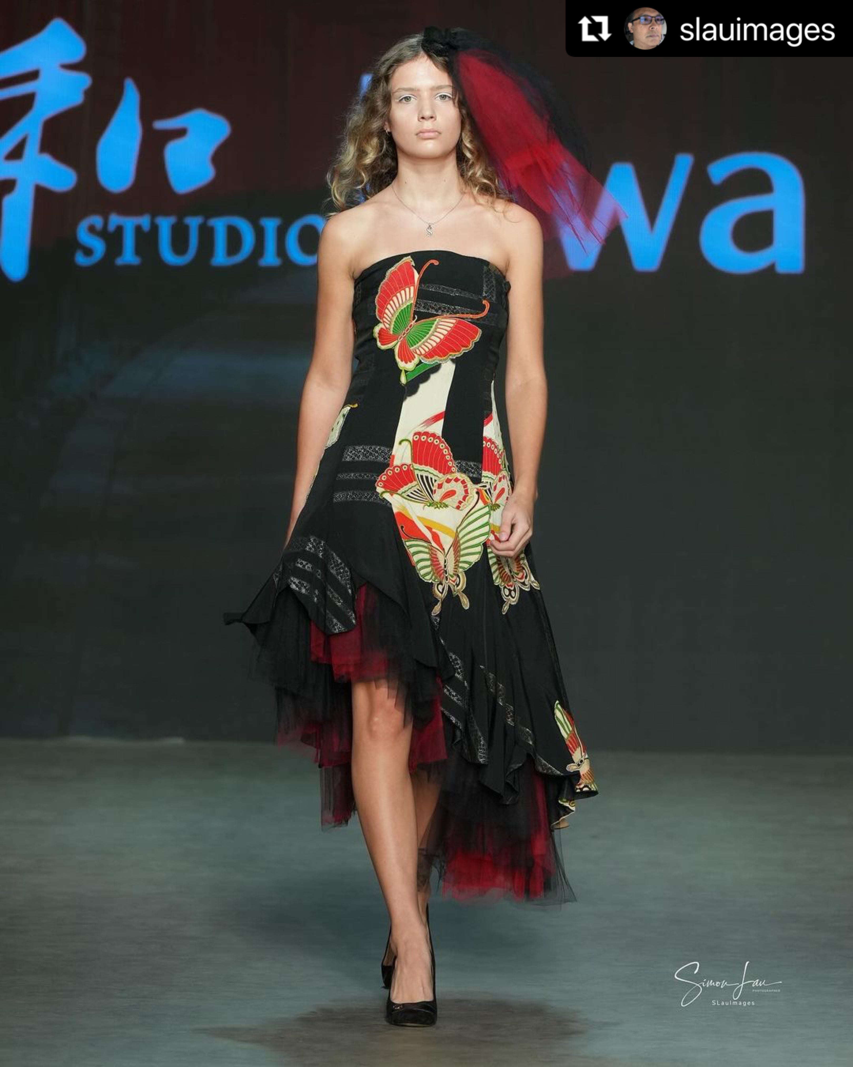 20分のショーの中で着物を即興ドレスに変化するという日本の職人技を披露する。