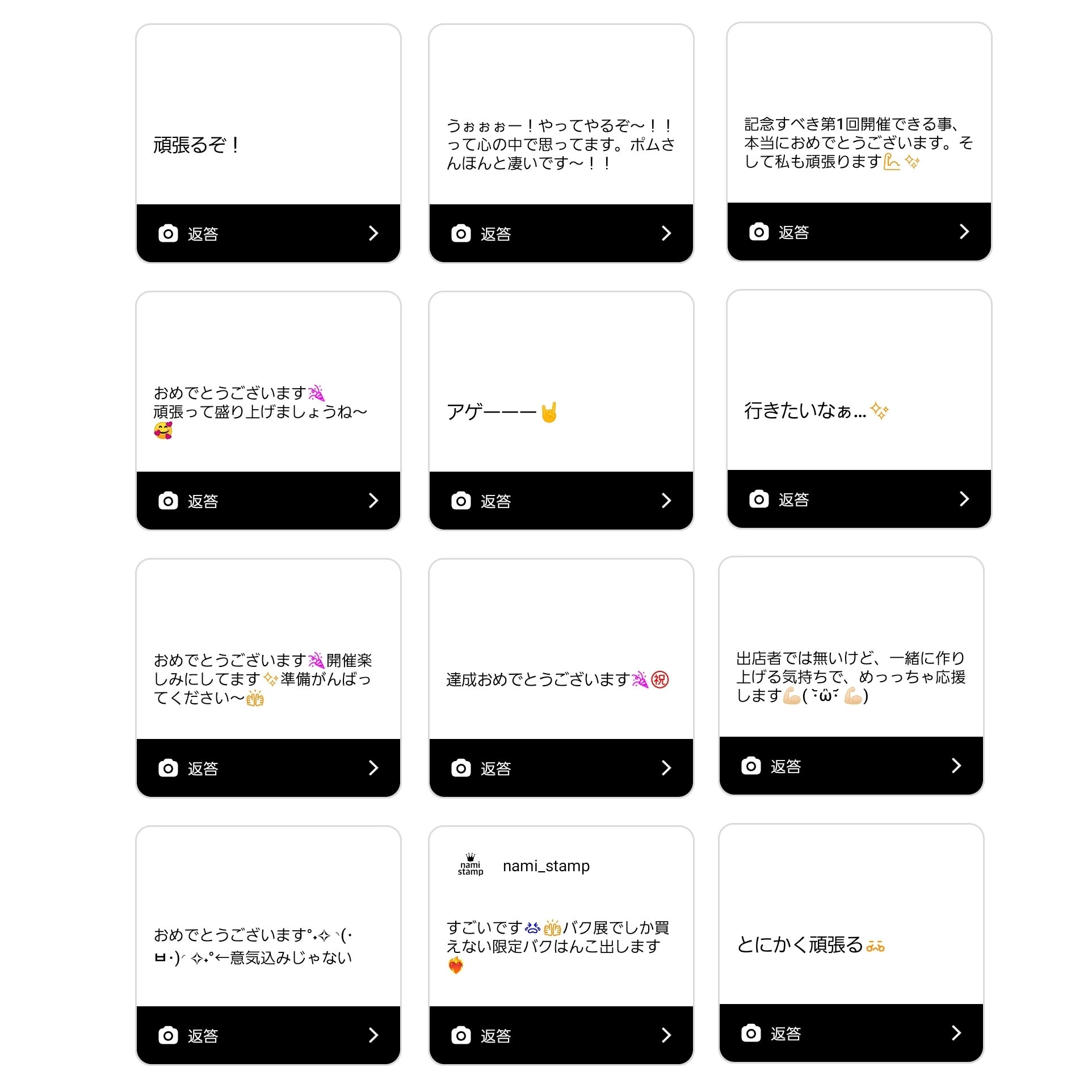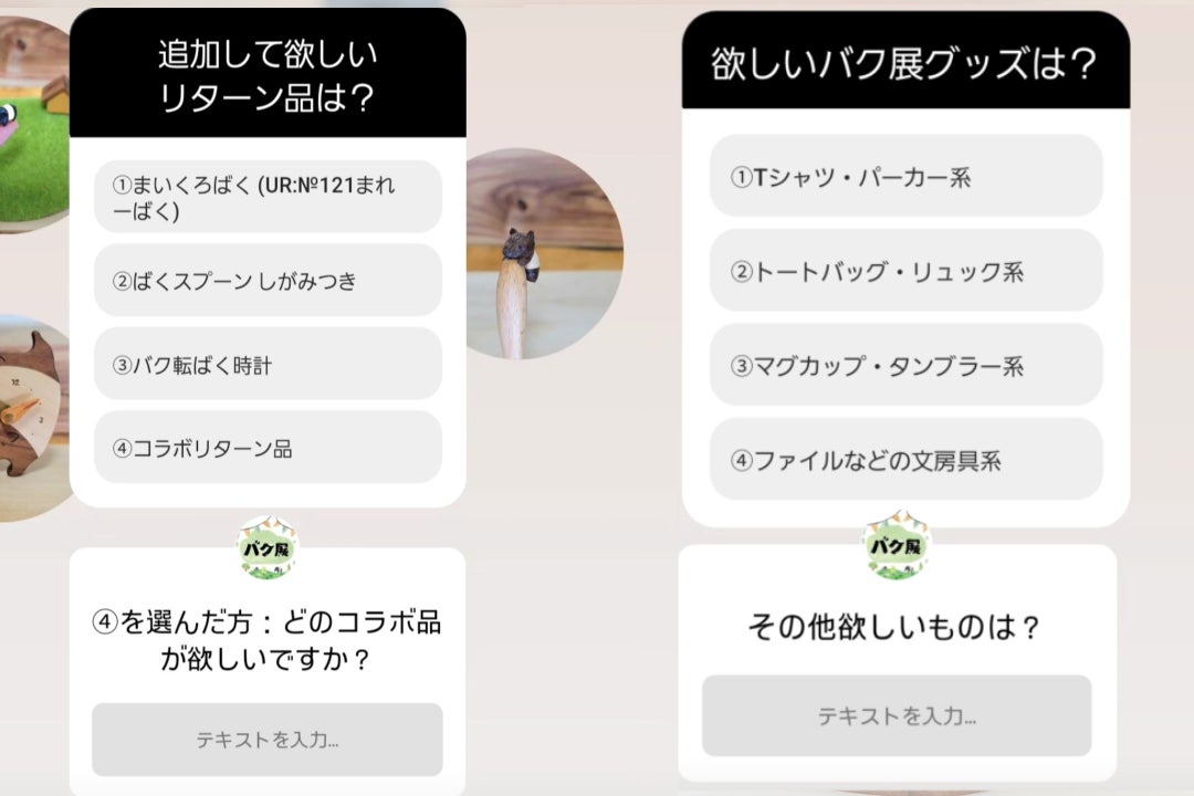 どうもー!木を愛し木に愛された男、木好作家ぽむです!改めまして、みなさまのご支援&応援まことにありがとうございます!!このプロジェクトページでの応援メッセージもたくさんいただけてとても嬉しいです!励みになります!Instagramのバク展公式アカウントにもたくさんのメッセージ頂いております!嬉しい限りです!(写真はその一部です)バク展出店者さんも、当日に向けていろいろ準備してくださってます♪楽しみですね♫バク展をさらに盛り上げていくためセカンドゴール検討中です!引き続きご支援応援拡散のほどよろしくお願いします!◆バク展開催のプロジェクトページはこちら