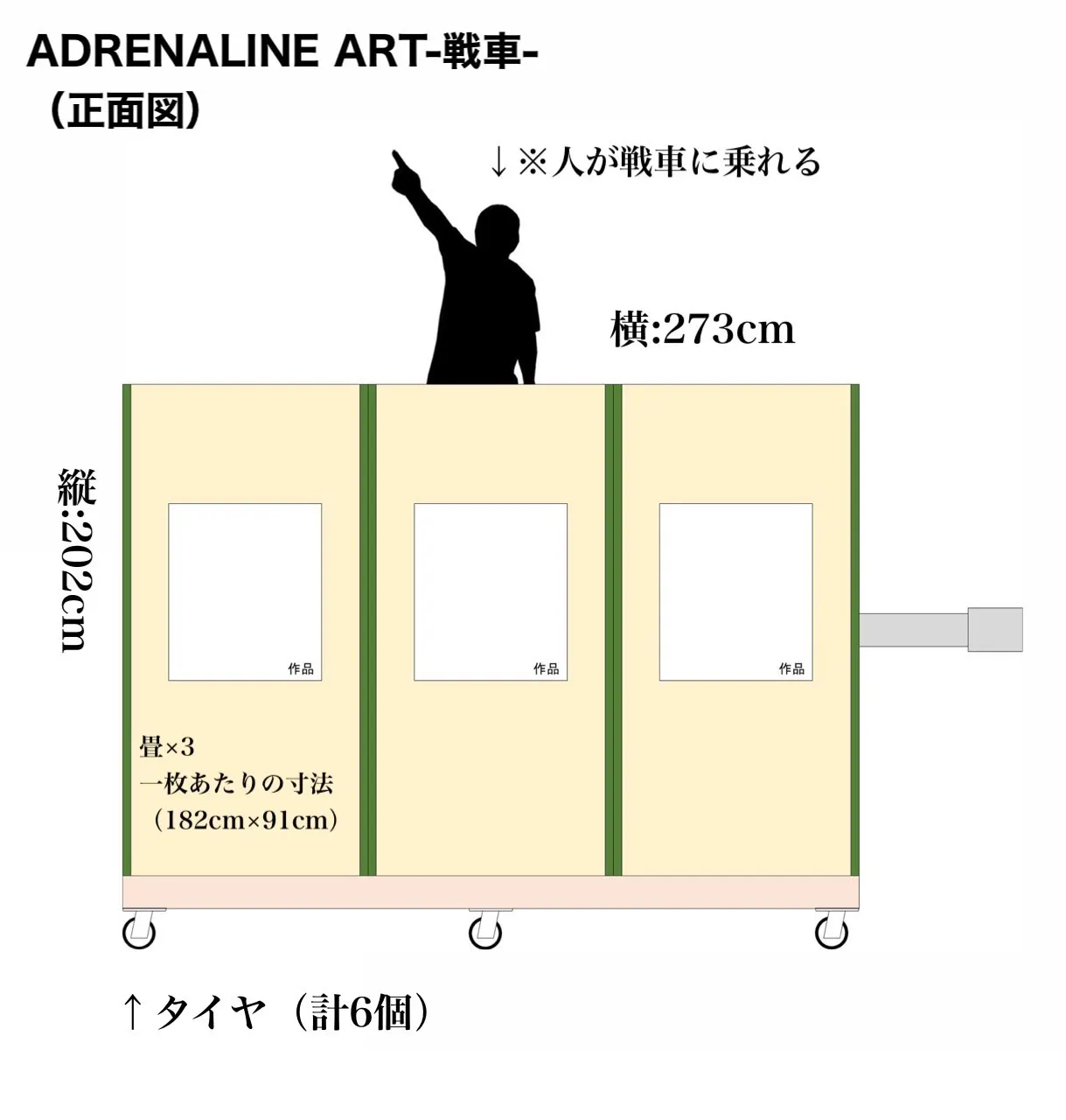 「ADRENALINE戦車」とは、キャンバスを貼り付けた畳を取り付けた車です。