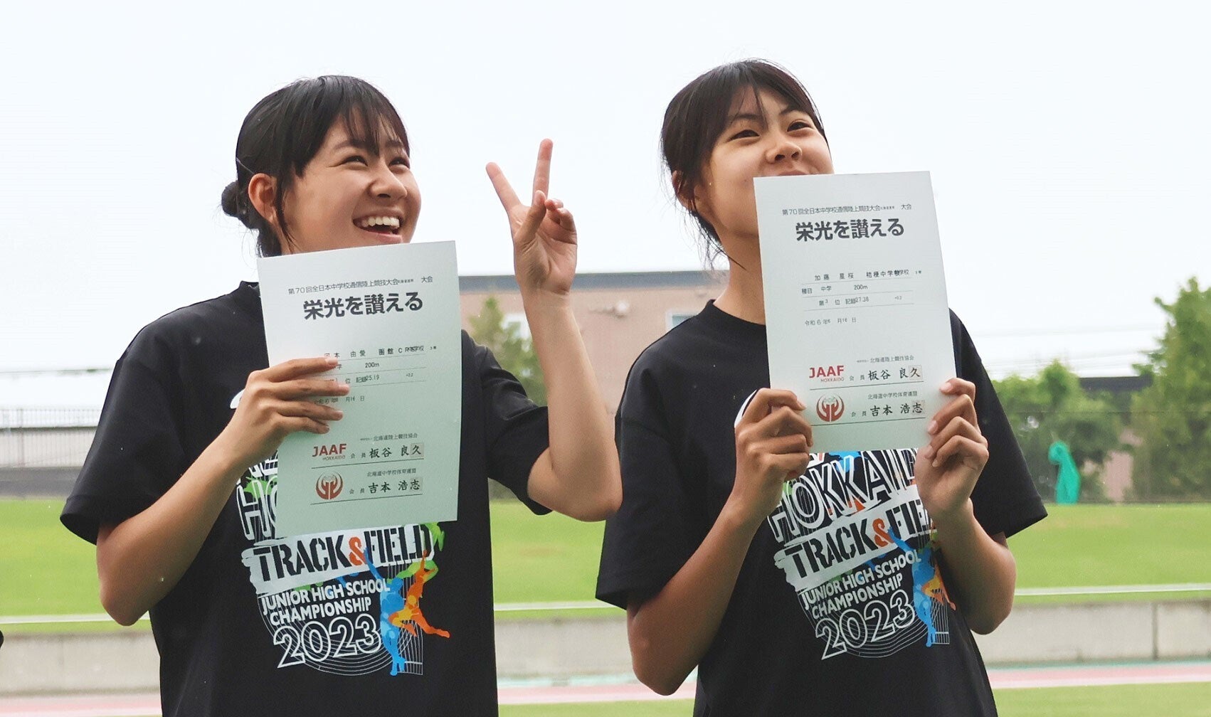 出場選手は、本スクール所属の小林一奈さん(函館戸倉中学校3年)3000m、河本由愛さん(函館桔梗中学校3年)200m。いずれも標準記録を大幅に突破して出場権を獲得しました。