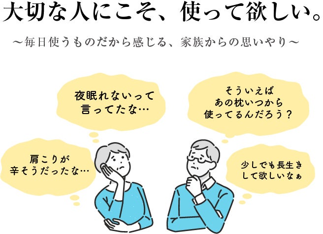 そして、おじいちゃん、おばあちゃんは毎晩枕を見る度に、プレゼントしてくれたご家族の思いやりを感じながら、眠りにつくことができるのです。