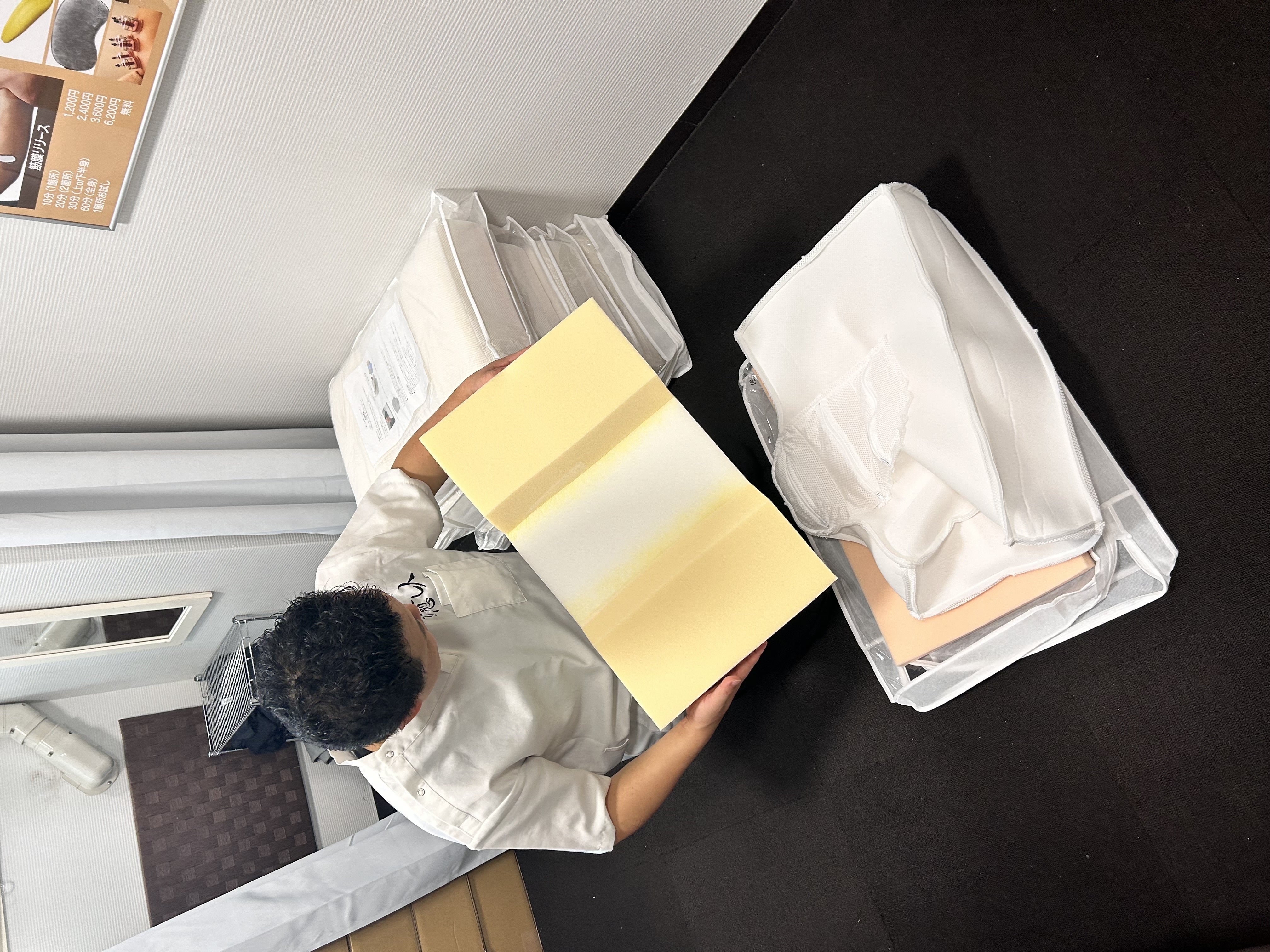 枕のスポンジの状態、チャックの動き、ビーズの確認を行っております。