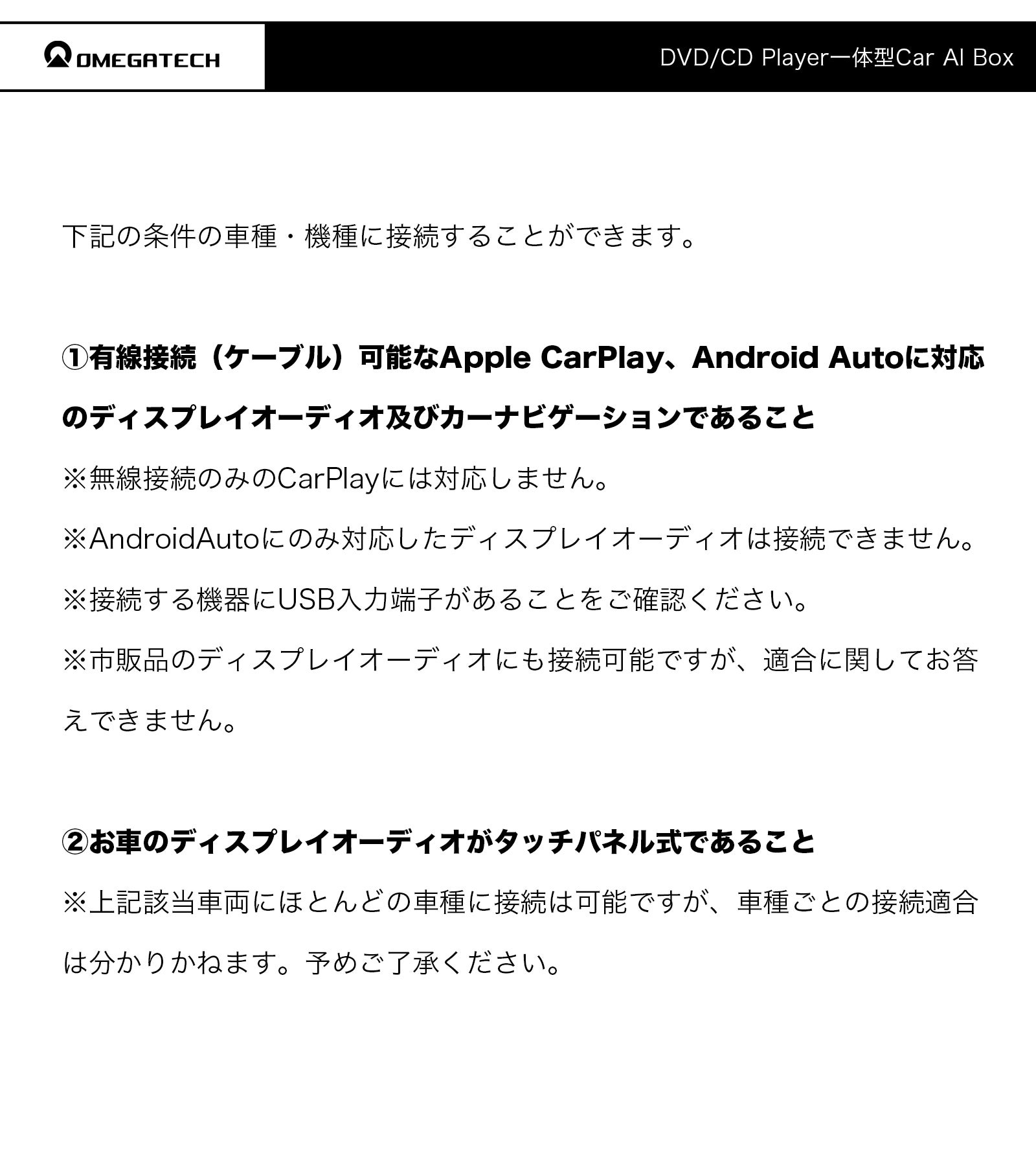 ※他の機器でCarPlay及びAndroidAutoが無線(ワイヤレス)接続が設定されている場合は本製品は起動しませんのでご注意ください。(無線接続が優先的に起動します)
