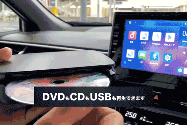 ※市販のDVD・CDのみ対応、ブルーレイDVD・CPRMが再生できかねます。車の相性やディスクの年式・劣化・状態・フォーマットなどによって日本市場向けのDVDでも再生できない場合があります。
