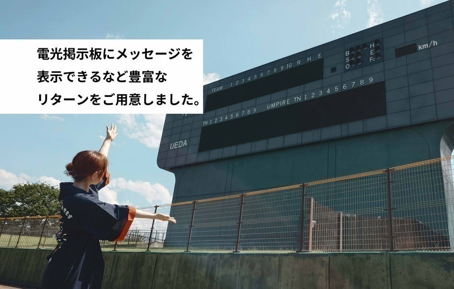 球場にある電光掲示板にメッセージを流せる、筒場の見学ができるなどさまざざまなリターンをご用意いたしました。