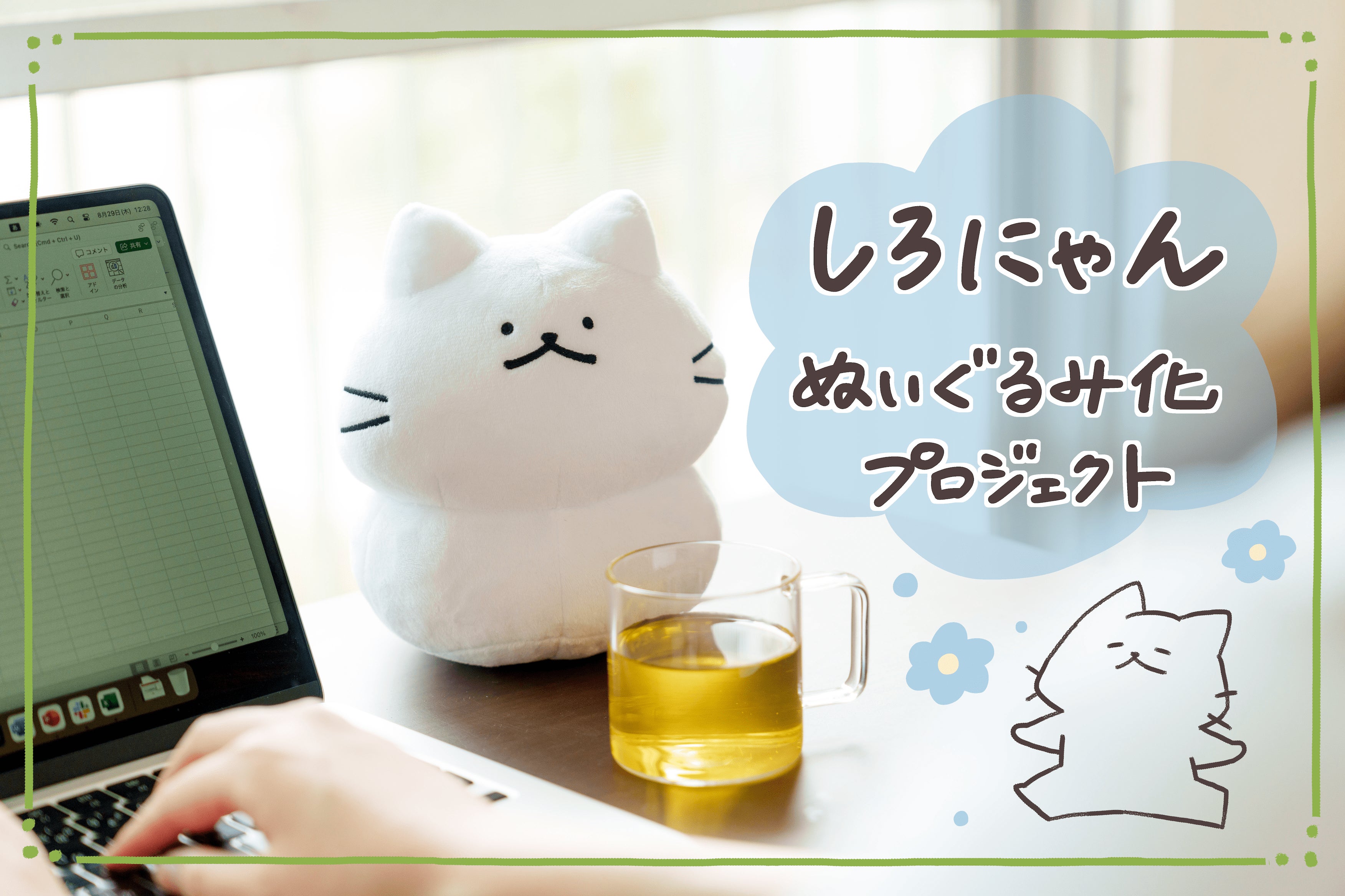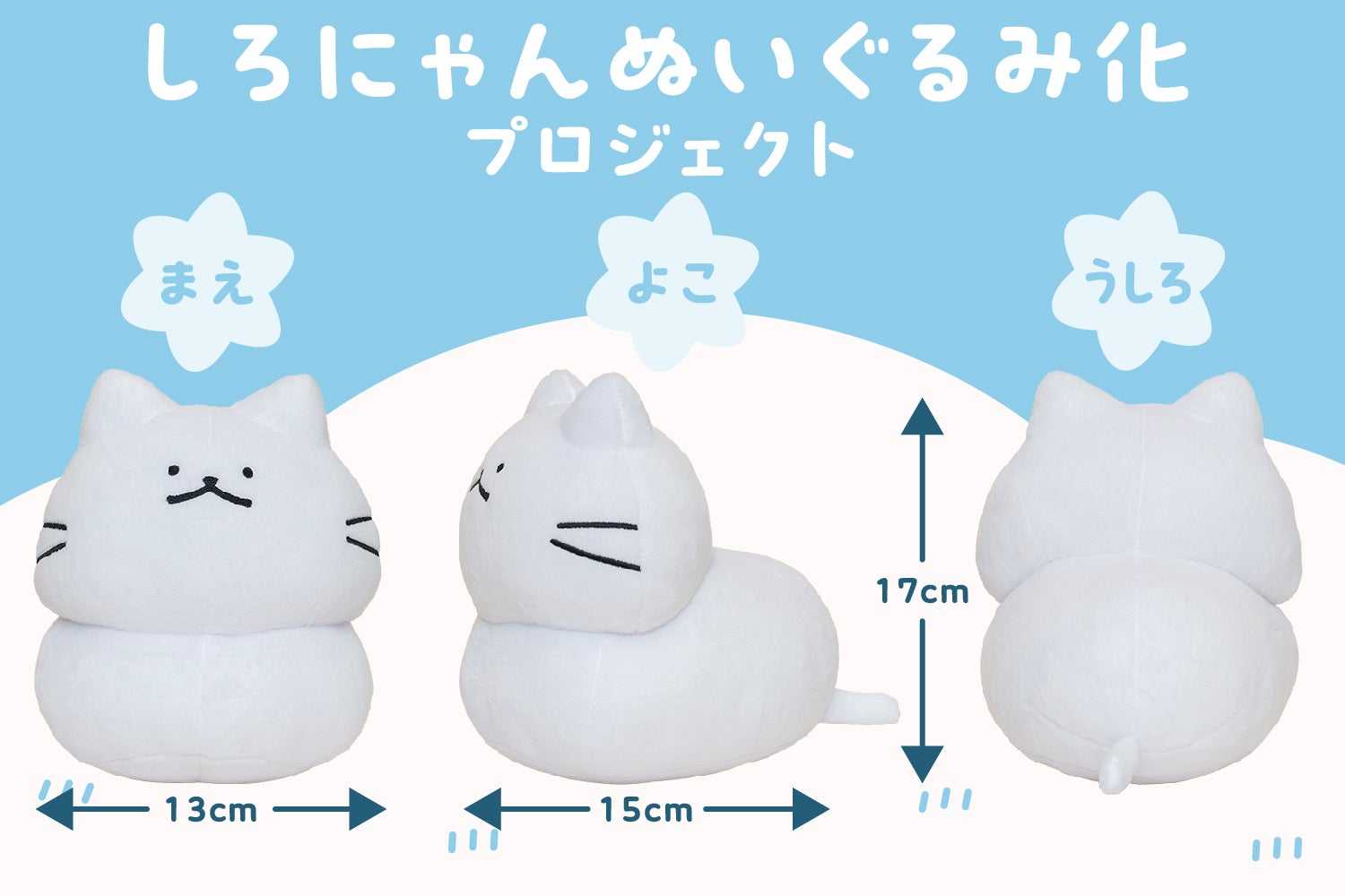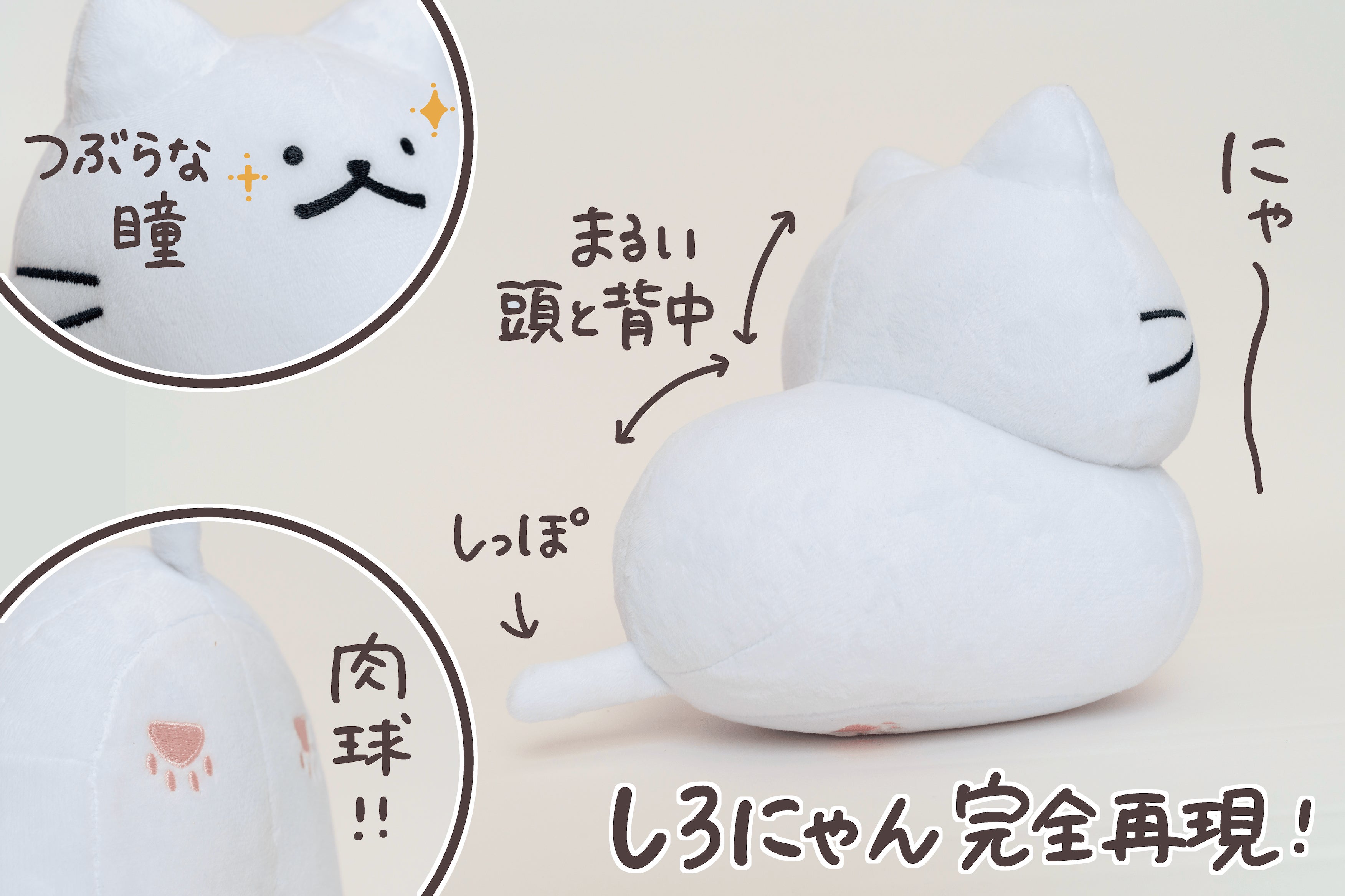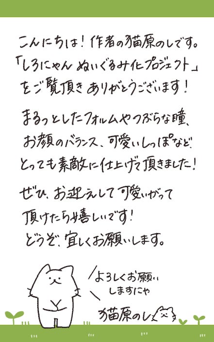 イラストレーター猫原のしの描く「しろにゃん」が初のぬいぐるみ化に挑戦します!